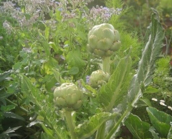 An impressive variety of robust, healthy and extremely diverse vegetable crops can be found here, interspersed with numerous flowering plants, making this a real treasure trove of biodiversity on the FH campus. Chard, runner beans, lettuce, tomatoes, peppers, carrots, cabbage and onions, as well as magnificent artichokes and sprawling courgette and pumpkin plants, are all ripe for the picking.