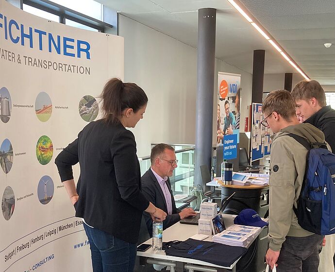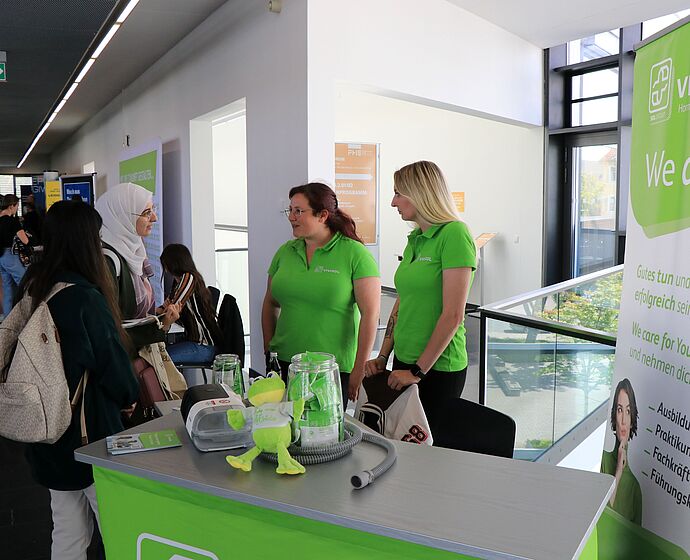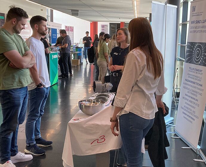 Am 12.06.2024 war der Campus Altonaer Straße der zentrale Treffpunkt von Unternehmen und Institutionen mehrheitlich aus Thüringen und darüber hinaus. Denn auf der 3. Zentralen Karrieremesse der FH Erfurt präsentierten sich über 50 Ausstellende den Studierenden und umwarben ihre potentiell zukünftigen Fach- und Führungskräfte. Sie berieten ausführlich und unterbreiteten Angebote für den Berufseinstieg, für Praktika, Werkstudierendenarbeit sowie Bachelor- und Masterarbeiten.