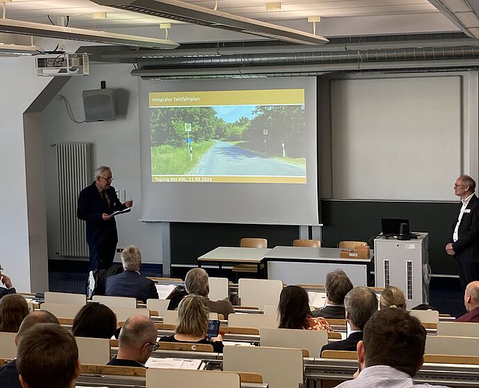 - Abschließend stellte Dipl.-Ing. Constantin Pitzen das Konzept des Integralen Taktfahrplans für Thüringen vor. Durch die aktuelle Entwicklung und Umsetzung dieses Konzeptes werden Buslinien an wichtigen Orten verknüpft und entsprechend getaktet. Dies soll es in Zukunft ermöglichen, den Busverkehr so auszurichten, dass weniger Wartezeiten beim Umsteigen zwischen einzelnen Verbindungen, auch zwischen Bus und Bahn, entstehen. Über Landkreisgrenzen hinweg sollen Verbindungen zeiteffizient funktionieren und mit weniger Fahrten insgesamt eine deutlich bessere Abdeckung ermöglichen. Dies spart Kosten und erhöht die Nutzungsqualität, verlangt allerdings einen Systemwechsel. Hierzu gehöre Mut, denn Einzellösungen zum Beispiel bei der Schülerbeförderung passen dann nicht mehr in das System.