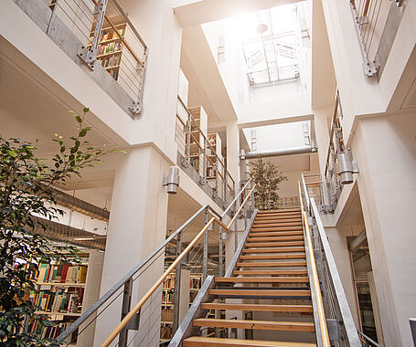The university library is in Building 2 on the main campus at Altonaer Straße. You can access the library either from the courtyard or from Hamburger Straße.
