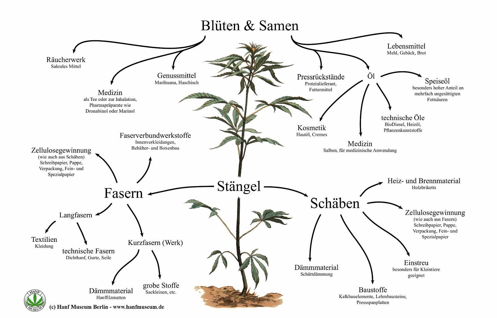 This herbaceous perennial plant originates from central Asia and botanically belongs to the hemp family (Cannabaceae), like hops. Hemp can be used in four different ways: