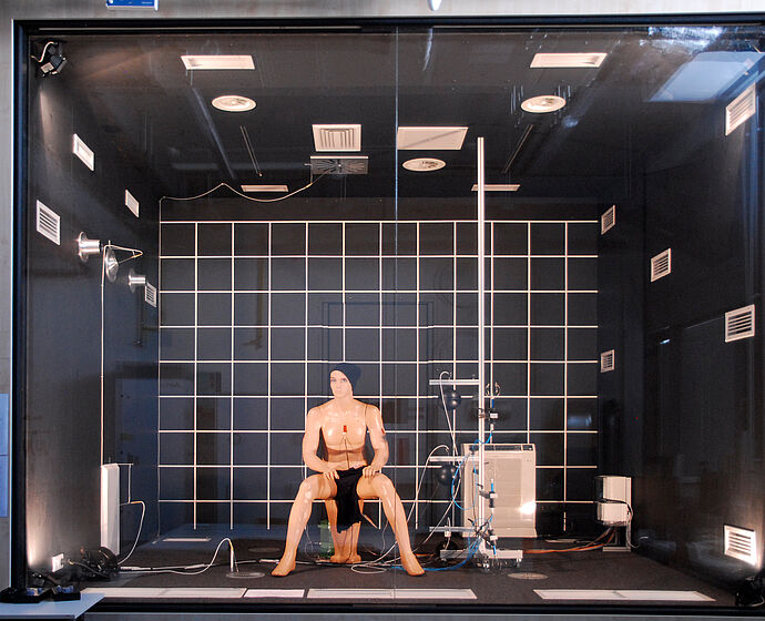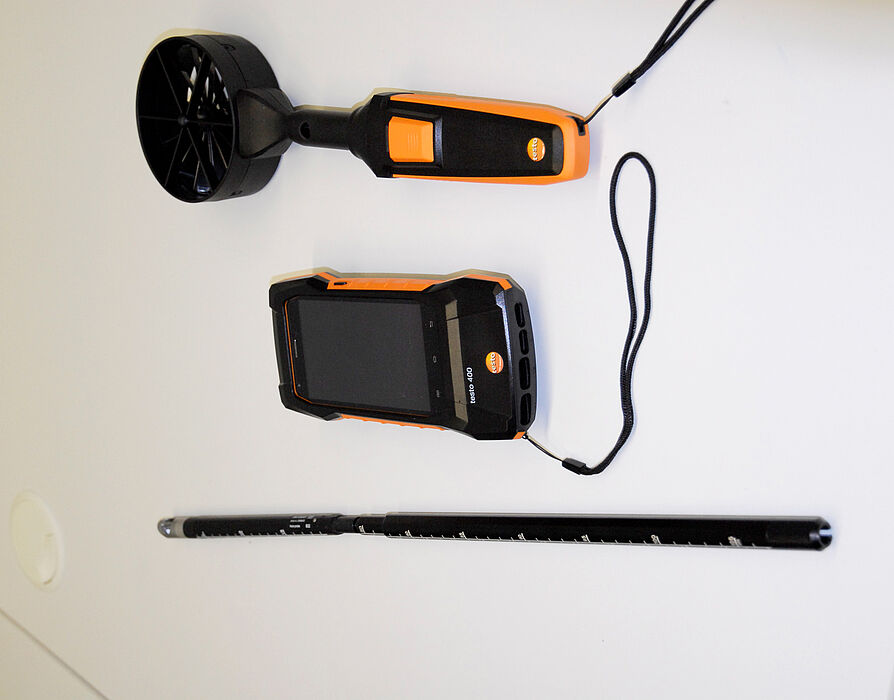 Air supply and exhaust ducts with air diffusers, source air induction unit, measuring technology, indoor air flow chamber