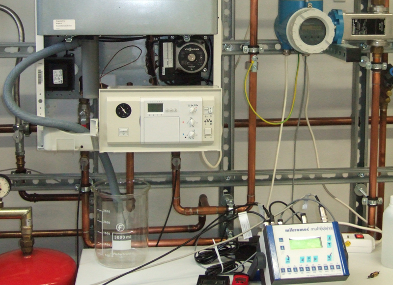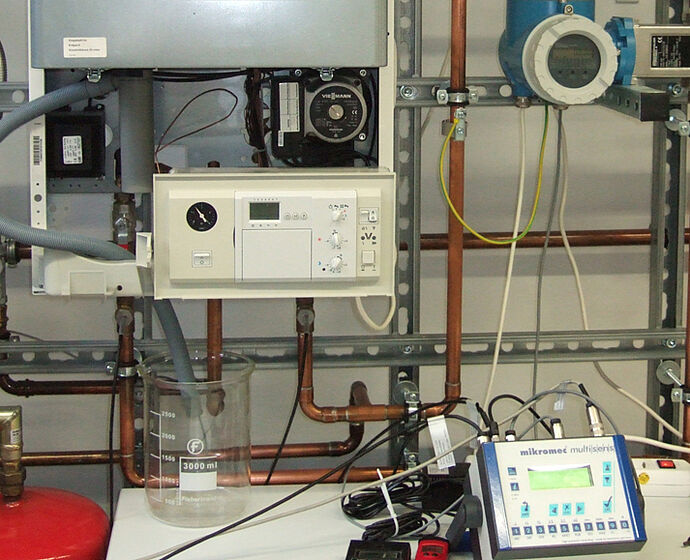 - Exhaust emissions of a heat generator with an oil-fired forced draught burner - The students measure exhaust emissions during start-up, in steady-state operation and after a heat generator has been switched off. Furthermore, the exhaust volume flow, air ratio, exhaust losses and pollutant emissions are measured or calculated for different settings of the air damper.