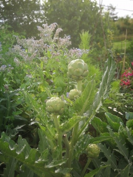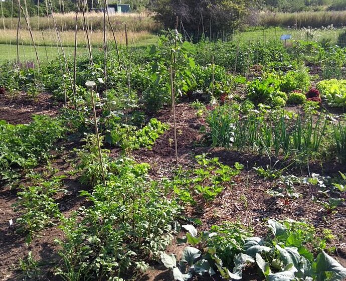 An impressive variety of robust, healthy and extremely diverse vegetable crops can be found here, interspersed with numerous flowering plants, making this a real treasure trove of biodiversity on the FH campus. Chard, runner beans, lettuce, tomatoes, peppers, carrots, cabbage and onions, as well as magnificent artichokes and sprawling courgette and pumpkin plants, are all ripe for the picking.