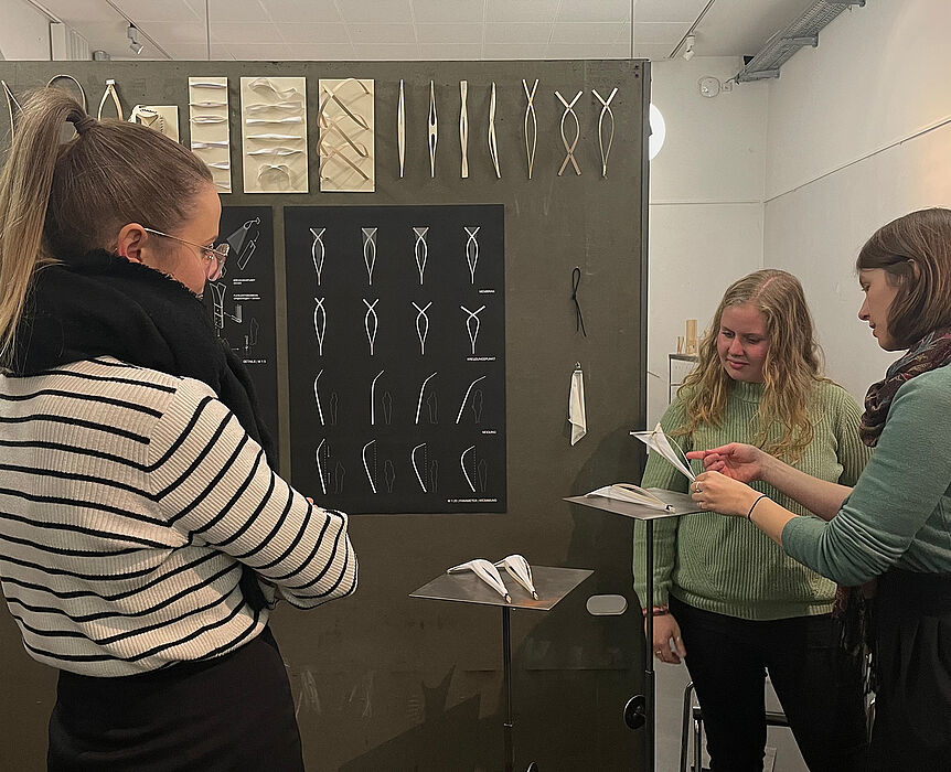Entwerfen hat eine Richtung - die Ausführung. Mit dem Projekt als wörtlichen Wurf in die Zukunft übersetzen wir immer auch für Adressat:innen, seien es Auftraggeber, Handwerkerinnen oder Roboterarme. Entlang technologischer Fiktionen und Friktionen erprobt das Fachgebiet hier experimentelle Strategien zwischen Materialprobe, Prototyp und 1:1. Ansätze skalarer Fabrikation, intuitiver Technologienutzung und wertschöpfungsbezogener Rohstoffstrategien werden dabei transdisziplinär mit oft ungewohnten Partner:innen erprobt. Zwischen Industrie, Handwerk, Wissenschaft und Kultur entwickelt sich damit ein Netzwerk nachhaltiger Kollaborationen als Inkubator spekulativen Foschens und Lehrens im digitalen Wandel.