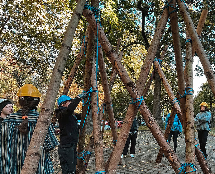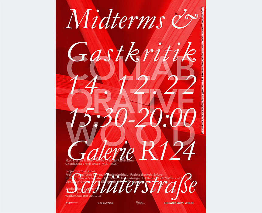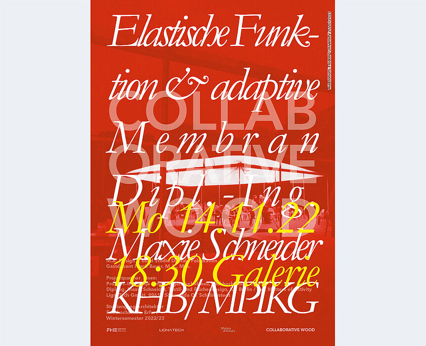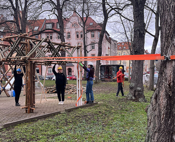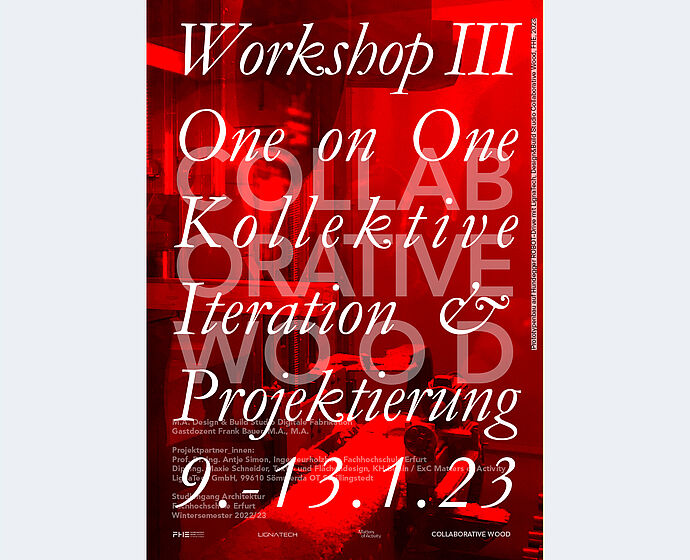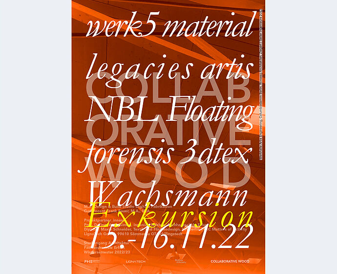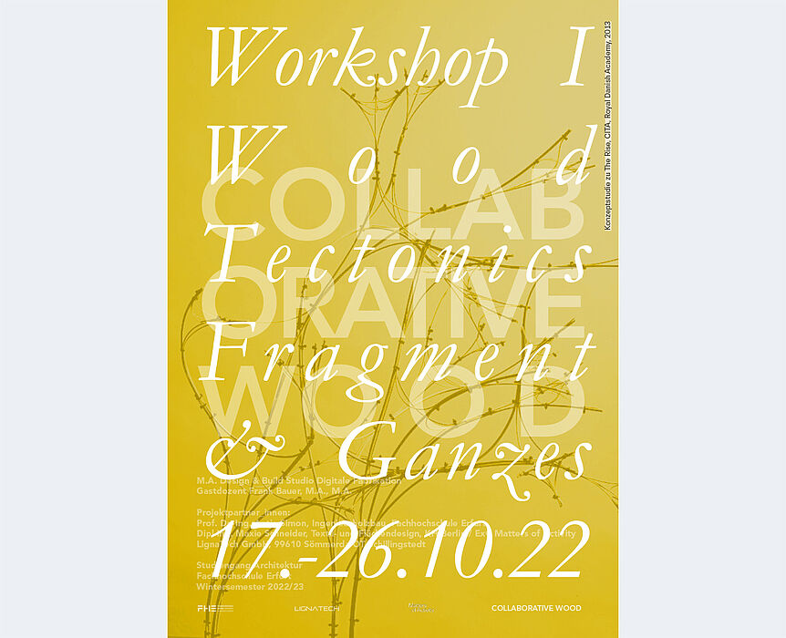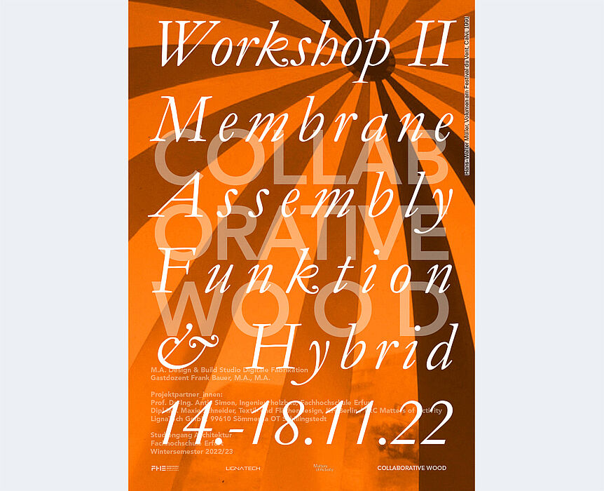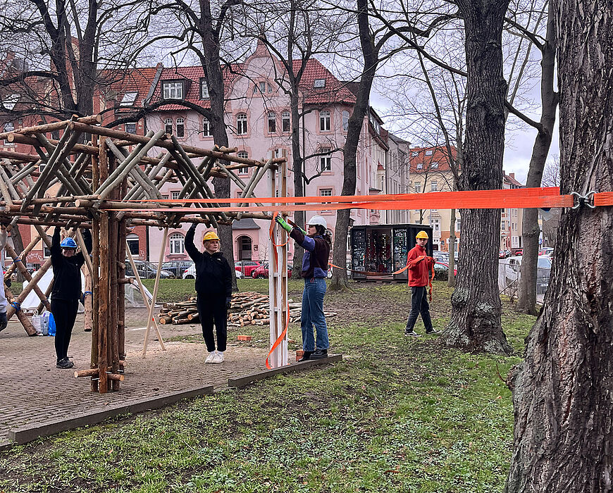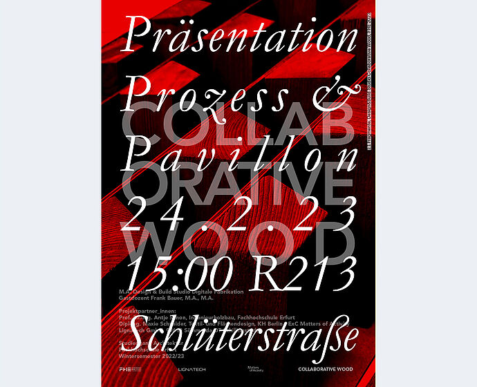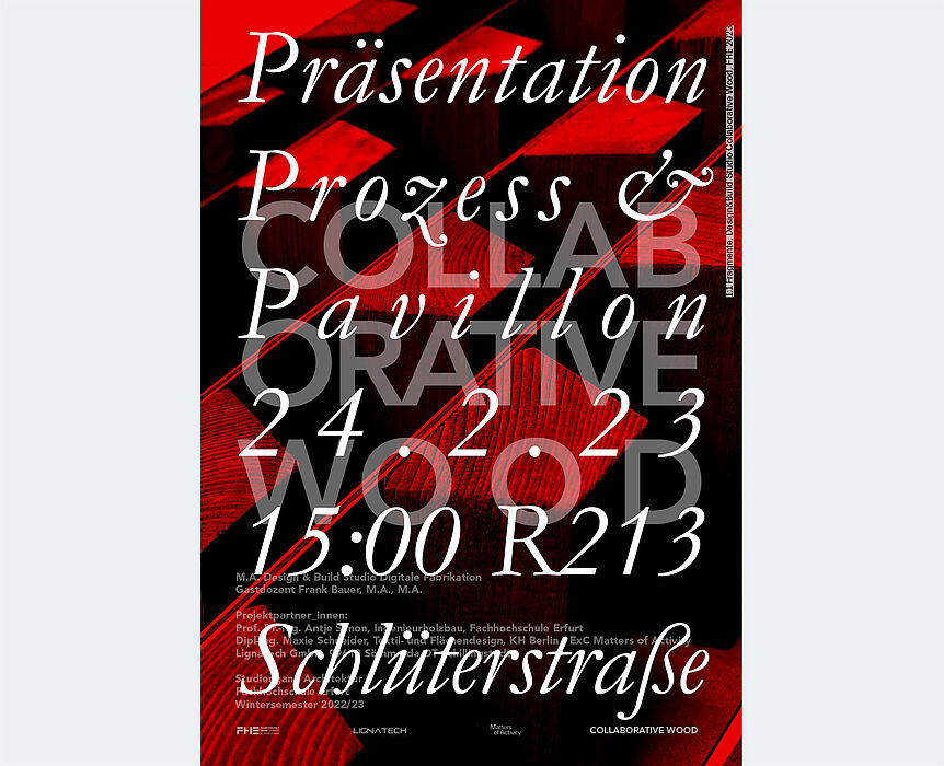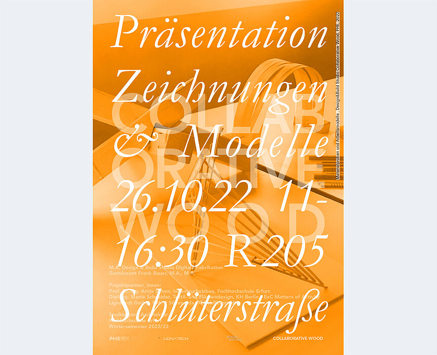Partner:innen: LignaTech GmbH (Sömmerda), Prof. Dr.-Ing. Antje Simon (Ingenieurholzbau, FHE), Prof. Bernhard Haag (Tragwerksplanung, FHE), Dipl-Ing. Maxie Schneider (KH Berlin / MPIKG / ExC Matters of Activity), Prof. Dr.-Ing. Robert Kaden (Vermessung und Geoinformatik, FHE)