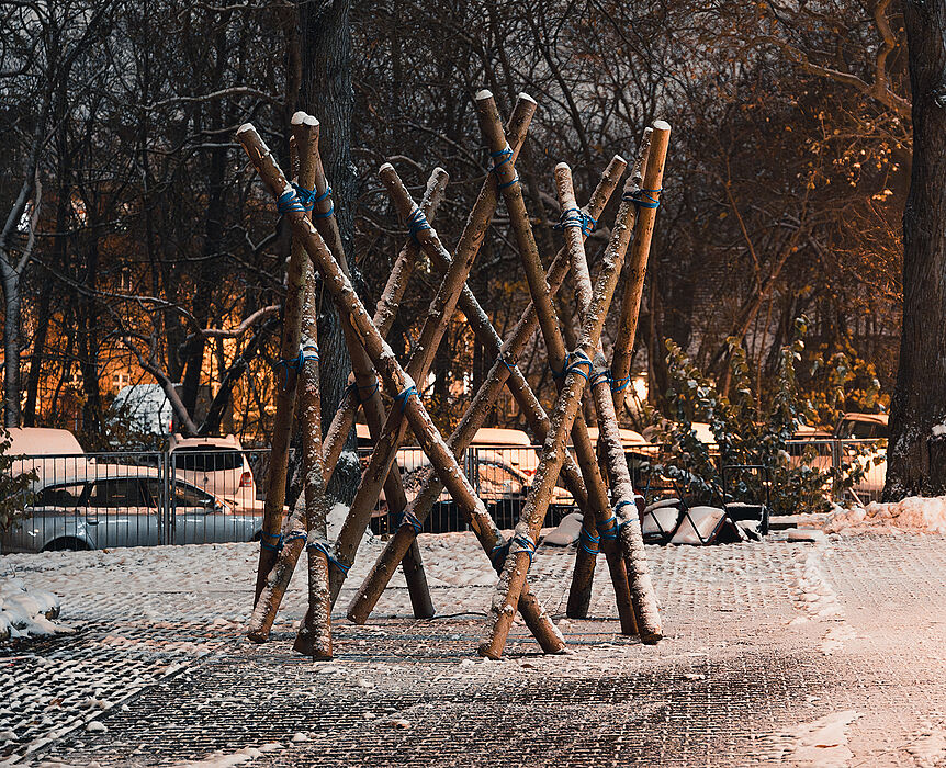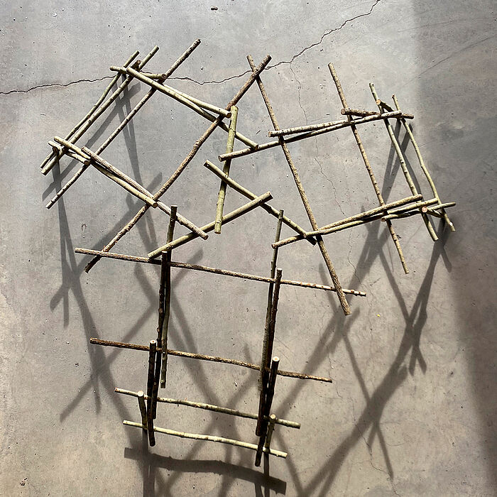 Baumaterialien sind eine knappe und unterschätzte Ressource voller grauer Energie. Zugleich fallen in vielen industriellen Produktionsketten Nebenprodukte und Halbzeuge an, deren effiziente Nutzung Anwendungen abseits gängiger Normen und Bauzyklen erfordert. Welche Fundstücke oder Fragmente, die nicht direkt als Baumaterialien ausgewiesen sind, eignen sich zur Umnutzung? Welche Fügungslogiken und ästhetischen Ausdrucksformen ergeben sich aus dem Material und seiner (Wieder-)verwendung? In der Erforschung innovativer Strategien der Materialverwendung und -umwidmung entwickelt der Kurs Konstruktionsprinzipien für den Bau experimenteller 1:1 Strukturen. Mittels komplementierender Praktiken befördert es neue Verschneidungen händischer Techniken und zeitgenössischer Technologien sowie eine neue Haltung der Studierenden zum zyklischen Kulturwandel des Bauwesens.