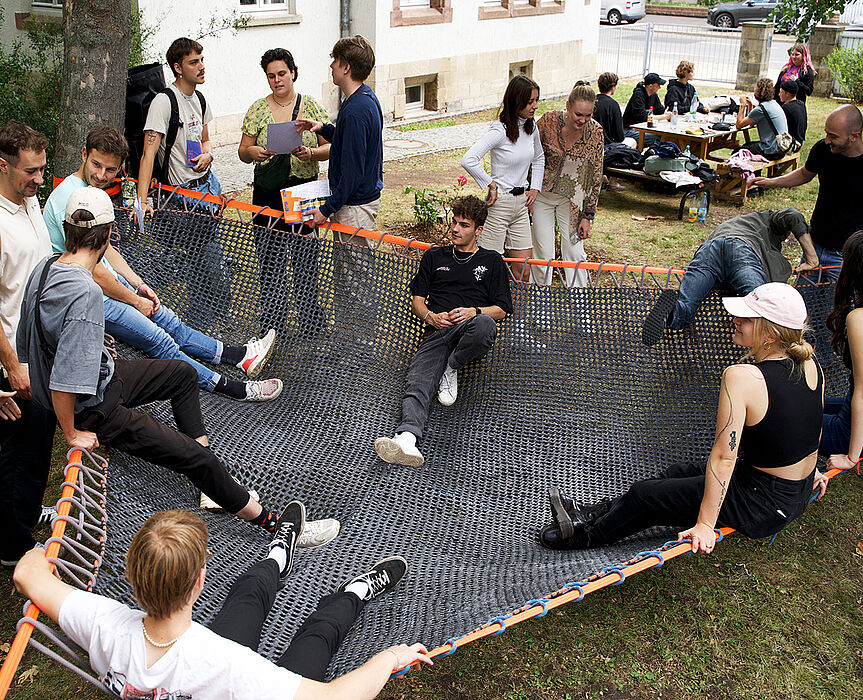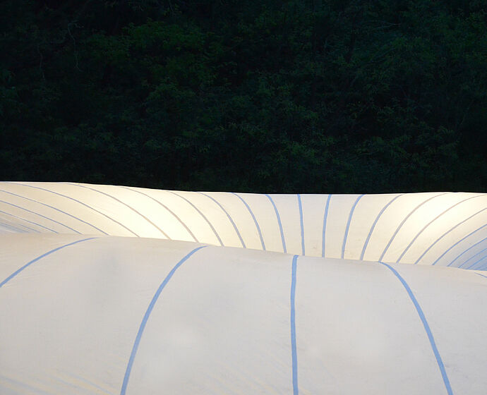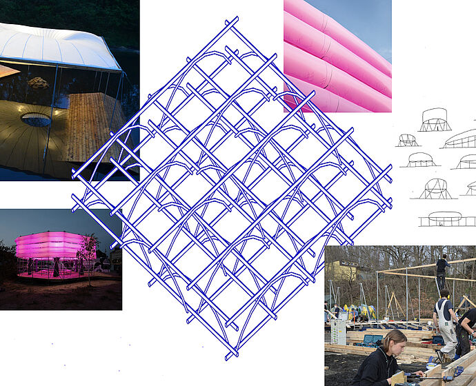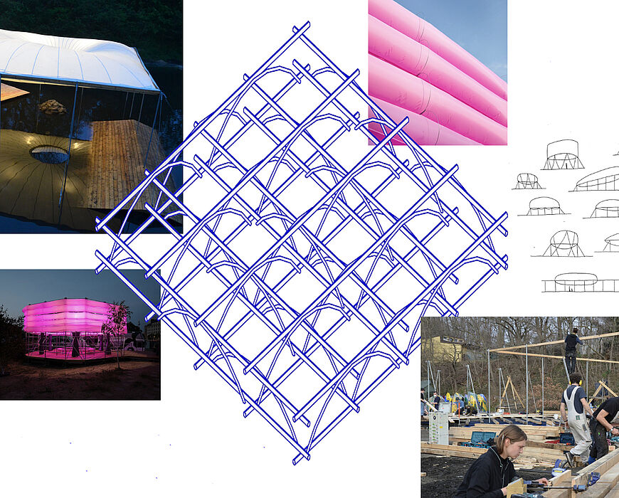 Ausgangspunkt für den Transformationsprozess der Bauhütte ist ein textiles Denken, dass die Holzkonstruktion gestalterisch und konstruktiv um einen Witterungsschutz erweitert. Durch gewebte Stoffe, gespannte Luftmembranen und Zugseile erhält die Bauhütte eine schützende und wandelbare Wetterhaut. Form, Struktur und Raum entwickeln sich aus den komplexen Wechselwirkungen von Geometrie, Material, Funktion und Umwelt in einem in- tegrativen Prozess der Gestaltung. Die Grundlagen des textilen Entwerfens, Planens und Bauens werden über prototypische kleinmaßstäbliche Architekturmodelle und Zeichnungen bis hin zur 1:1 Entwicklung und Umsetzung konstruktiver Details vermittelt. Das damit veror- tete Potential textiler Strukturen - ihr geringer Materialverbrauch und ihre Flexibilität - birgt eine mögliche Antwort auf aktuelle Fragen nach Umnutzung und Weiterbau bestehender Ar- chitekturen