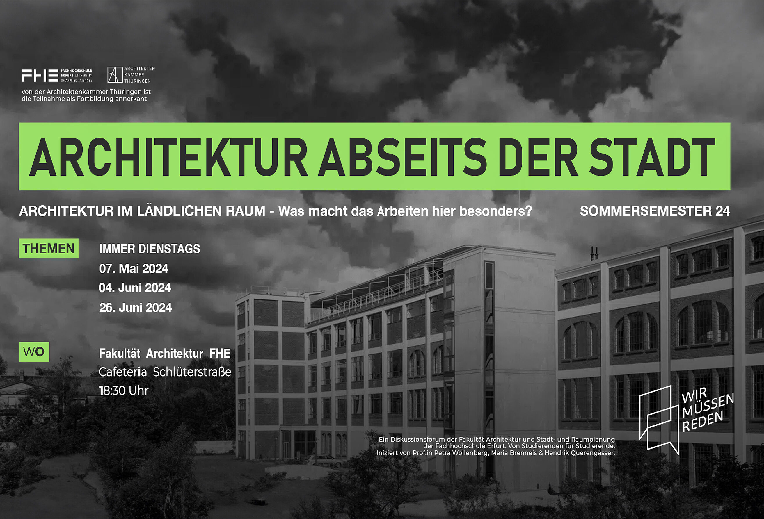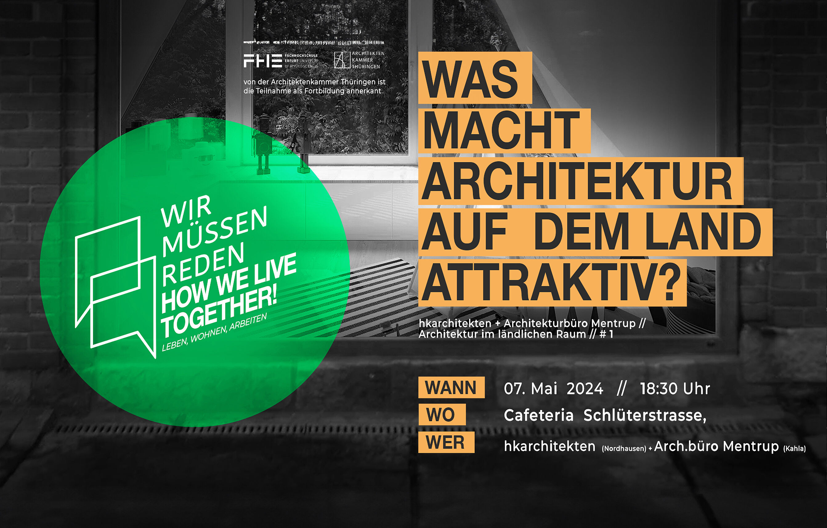Die Diskussionsreihe „Wir müssen reden“ geht in eine neue Runde unter dem Thema „Architektur abseits der Stadt // Was macht Arbeiten hier besonders“.