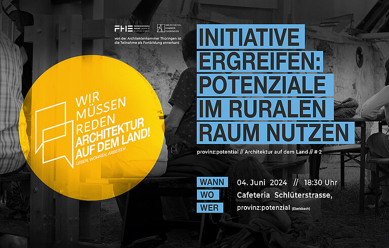 Zu Gast bei dieser Veranstaltung ist das studentische Kollektiv/Initiative provinz:potezial. Wir wollen zusammen Ihre Anfänge in der Architektur, Sicht auf den ruralen Raum, Projekte und Möglichkeiten im Bezug zum ländlichen Raum und dessen verschiedene Maßstäbe, Herausforderungen und Chancen besprechen. Außerdem laden wir euch ein, mit uns zu diskutieren, wie die gewonnenen Erkenntnisse weitergetragen und entwickelt werden können.