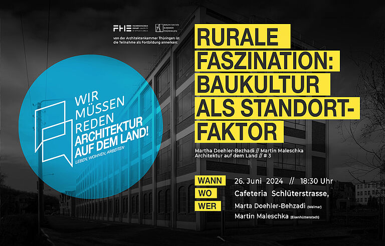 Zu Gast bei dieser Veranstaltung sind die beiden Protagonist:innen Marta Doehler-Behzadi und Martin Maleschka. Wir wollen zusammen über Ihre Arbeit im ruralen Raum und in der Architektur , Sicht auf das ländliche Potenzial, Projekte und Möglichkeiten im Bezug zum ländlichen Raum und dessen verschiedene Maßstäbe, Herausforderungen und Chancen besprechen. Außerdem laden wir euch ein, mit uns zu diskutieren, wie die gewonnenen Erkenntnisse weitergetragen und entwickelt werden können.