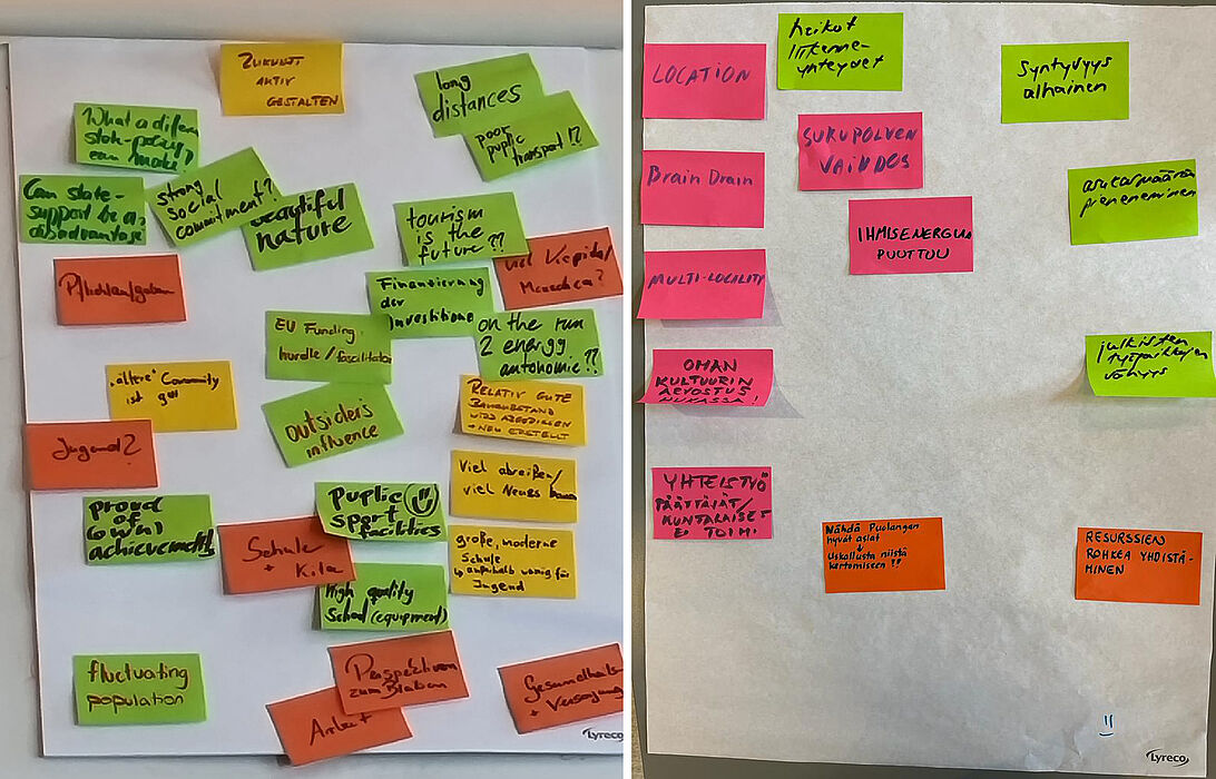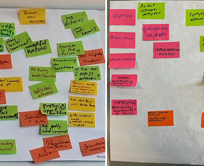 Während die Teilnehmenden aus beiden Städte ihre Lebensqualität insgesamt als hoch einschätzen, regte der Austausch Diskussionen an und brachte relevante Unterschiede ans Tageslicht: zum Beispiel in der Gesundheitsfürsorge (öffentliche Gesundheitsversorgung Lauscha, vom Rückbau betroffen; privatisierte, mobile Gesundheitsversorgung in Puolanka), im Wohnungssektor (saisonale Leerstände in Puolanka; selbst genutztes Wohneigentum für Familien und steigende Leerstandsquote in Lauscha), in den kommunalen Haushalten (langfristige Sparpolitik in Lauscha gegenüber großzügigerer staatlicher Unterstützung in Puolanka) und im Bildungswesen (deutlich weniger Kinder pro Erzieher:in und Lehrer:in im Kindergarten und in der Schule in Puolanka). Beide Städte haben jedoch gleichermaßen mit dem Rückbau des öffentlichen Nahverkehrs und der Abhängigkeit vom Auto zu kämpfen.