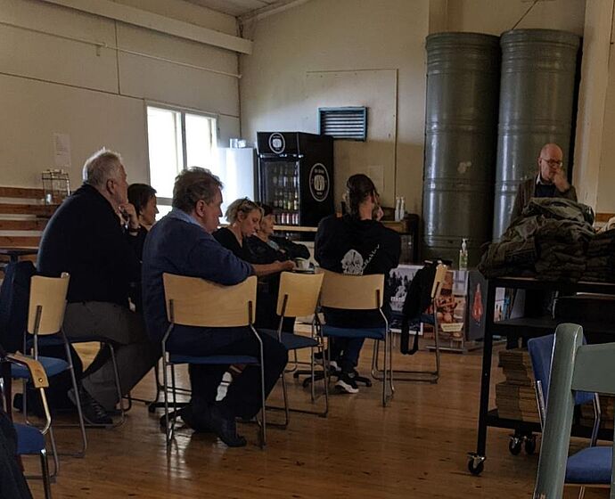 Ein Nachmittag war für den ersten von zwei Workshops mit Akteuren beider Städte reserviert. Konzipiert und moderiert von Steffen Präger von der NGO Kulturhanse, der über langjährige Erfahrung in der Unterstützung von Initiativen und Start-ups in Kleinstädten verfügt. Die Teilnehmenden des Workshops setzten sich aus Besucher:innen aus Finnland und verschiedenen Interessengruppen aus Lauscha zusammen, darunter Mitglieder des Stadtrats, der Verwaltung und der Bildungseinrichtungen sowie Künstler:innen und politisch aktiven Bürger:innen. Obwohl die Zeit begrenzt war, Sprachbarrieren ein Hindernis darstellten, und das Format “Workshop für einige der Teilnehmenden neu war, gelang es den Teilnehmenden aus beiden Ländern, ein grundlegendes Verständnis für die Positionen und Perspektiven des jeweils anderen in Bezug auf Lauscha und Puolanka sowie die jeweiligen Merkmale, Stärken und Schwächen ihrer jeweiligen Ortschaft zu erreichen.