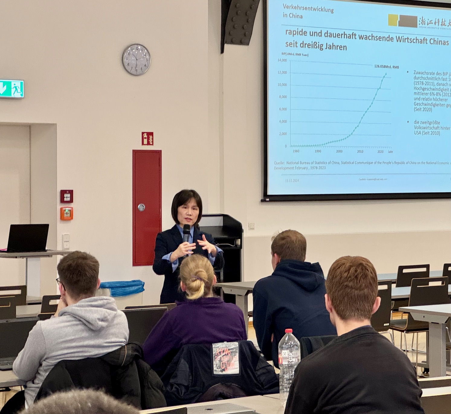 Frau Professor Min CAO von der Zhejiang University of Science and Technology Hangzhou, zugleich Direktorin des Konfuzius-Instituts Erfurt, war im Sommersemester 2025 erneut zu Gast an der Fakultät Wirtschaft-Logistik-Verkehr. Unser Dekan Professor Dr. Hans-Christian Gröger begrüßte sie am ersten Arbeitstag ihres mehrwöchigen Aufenthaltes an der FHE. Zum Abschluss organisierte sie eine Informationsveranstaltung über Studienmöglichkeiten an ihrer Heimathochschule, bei der ein auch in Hangzhou ausgebildeter früherer Absolvent des Masterstudiengangs "Finance & Accounting" die Zuhörer an seinen China-Erfahrungen teilhaben ließ.