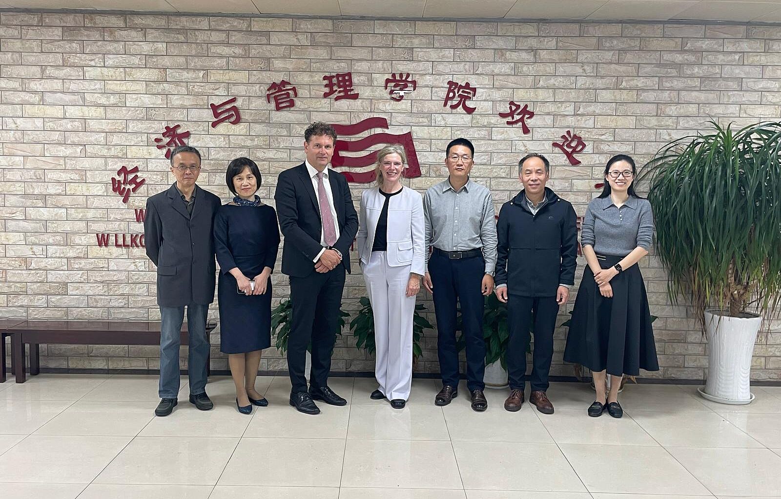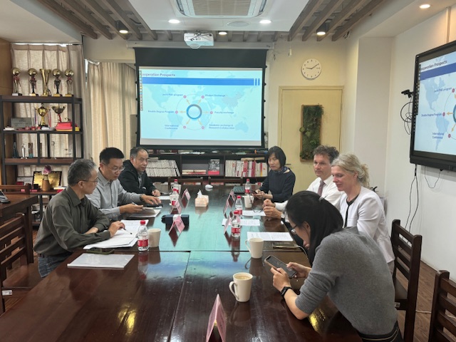 Die Zhejiang University of Science and Technology (ZUST) ist eine der langjährigen Partnerhochschulen mit bereits über 60 "Outgoings". Sie ist nach der Muster der deutschen FHs entstanden und wurde maßgeblich durch deutsch-chinesische Bildungskooperation seit Mitte der Achtzigerjahre, u.a. durch das Wirken von Professor em. Michael H. Wagner, aufgebaut. Auf Einladung der School of Economics and Management reisten die beiden Internationalisierungsbeauftragten der Fakultät nach Hangzhou. In Gesprächen mit den Fachkollegen befassten sie sich ausführlich mit den jeweiligen Ausbildungsprogrammen und deren Verknüpfung. Sie besichtigten zudem den Ausstellungspavillion zur Historie der binationalen Hochschulbeziehungen sowie den naturnahen Campus inmitten einer Bergkulisse, welcher auch einen künstlichen See umfasst und an das Anbaugebiet des Longjing-Tees grenzt. Zuvor wurden sie am Chinesisch-Deutschen Institut (CDI) durch Direktorin Prof. HAN Xiaoya empfangen und speisten gemeinsam mit dem Leiter des International Office Herrn Dr. RUAN Xiaobo. Frau Professor CAO Min (2.v.l.) absolvierte im gleichen Jahr einen mehrwöchigen Gastaufenhalt an der Fakultät WLV. Sie wurde im Kollegium herzlich willkommen geheißen und fand bei ihren Vorlesungen, z.B. über den Hochgeschwindigkeitsverkehr in China, aufmerksame Zuhörer.