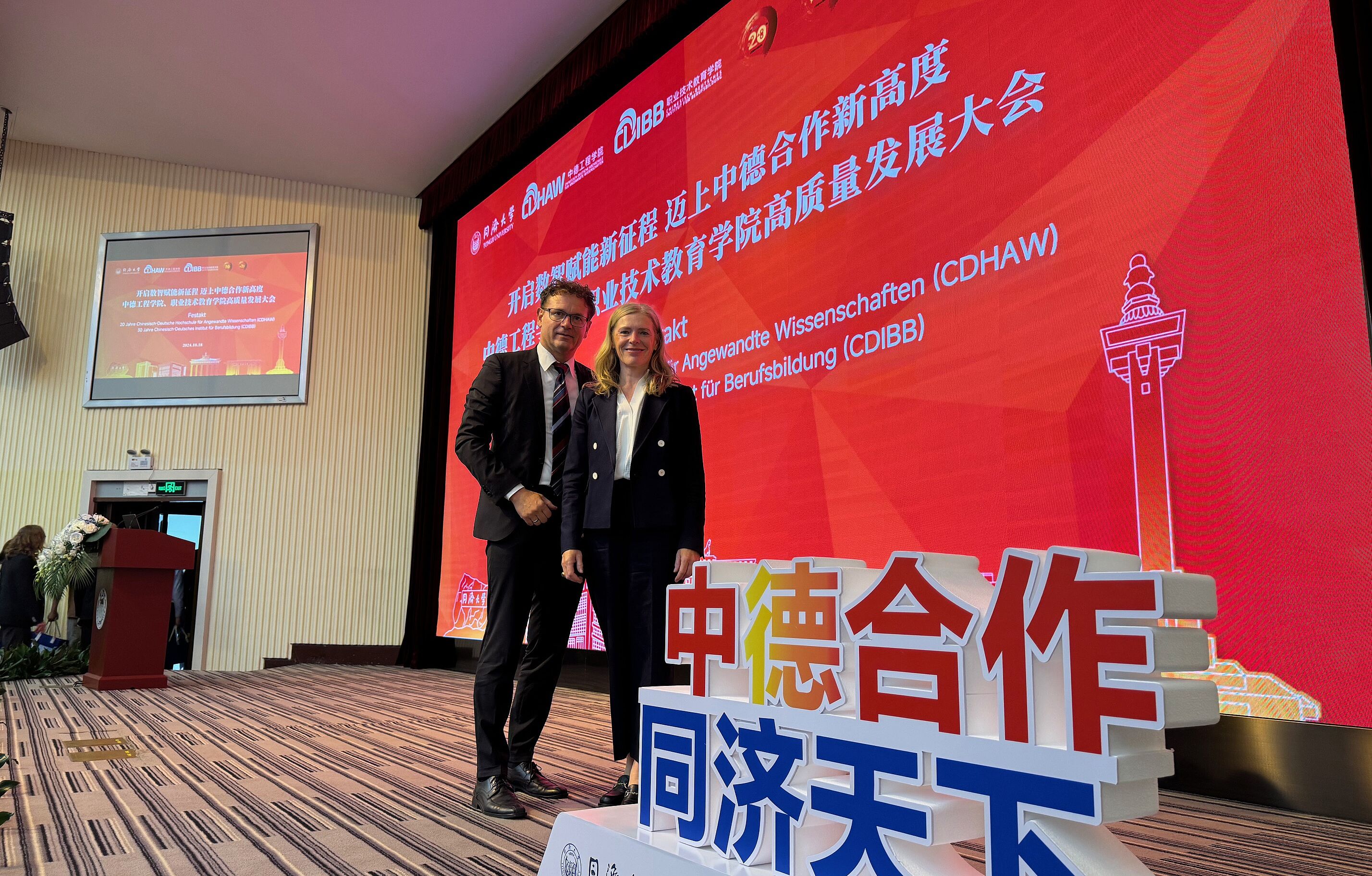 Als Repräsentanten der Fachhochschule Erfurt, Mitglied im Gründungskonsortium der Chinesisch-Deutschen Hochschule der Angewandten Wissenschaften (CDHAW), beauftragt nahmen Prof.in Brunner und Professor Heinitz im Oktober an den Jubiläumsveranstaltungen in Schanghai teil. Diese umfassten neben dem zentralen Festakt an der Tongji-Universität (Foto) einen Empfang im deutschen Generalkonsulat, ein Galadinner, Austausch mit Alumni, Firmenbesuche und ein kulturelles Besichtigungsprogramm. Von den angebotenen Studiengängen ist für unsere Fakultät der BEng Logistics Management relevant, in dessen zugehöriger bundesweiter Fachgruppe für Wirtschaftsingenieurwesen Prof. Heinitz seit 2010 mitwirkt.