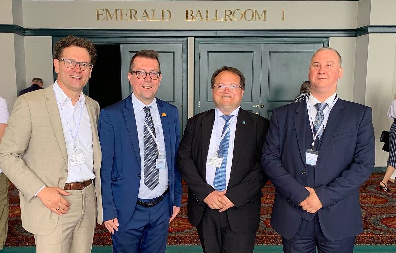 Wie in den Vorlesungen vermittelt, reduzieren Hub-and-Spoke-Netze und Tourenbildung im Vergleich zu etlichen Direktverbindungen in gewisser Weise den Ressourcenaufwand und damit schädliche Emissionen. Regelmäßige Fachtagungen wie die im späten Frühjahr im slowenischen Adriaort Portorož stattfindende ICTS bieten die Möglichkeit, die europäischen Netzwerke durch direkte Begegnungen frisch zu halten. Hier trafen die Professoren Ádám Török / TU Budapest, Borna Abramović / Uni Zagreb und Florian Heinitz mit dem Generalsekretär der European Platform for Transport Sciences Sebastian Belz zusammen. Am Folgetag gab es zur Auftaktsitzung des OPTI-UP-Projektes in Zagreb weitere Begegnungen mit Praktikern und Wissenschaftlern aus Kroatien, Ungarn, Slowenien, Tschechien und Österreich. (Foto: Privat)