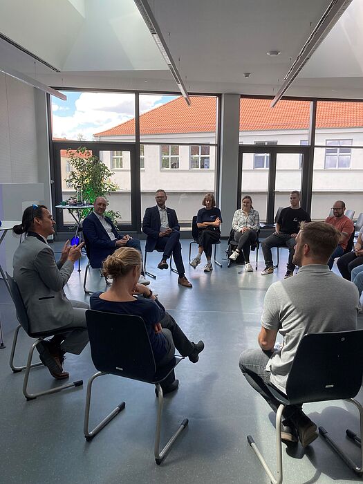 Einblicke in die akademische Welt und zum Karriereweg HAW-Professur gaben die Professor:innen der FH Erfurt Benedikt Römmelt (Wirtschaftswissenschaften), Dominik Stockenberger (Verkehrs- & Transportwesen), Doris Gstach (Stadt- und Raumplanung).