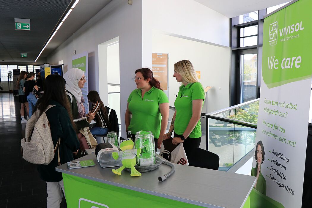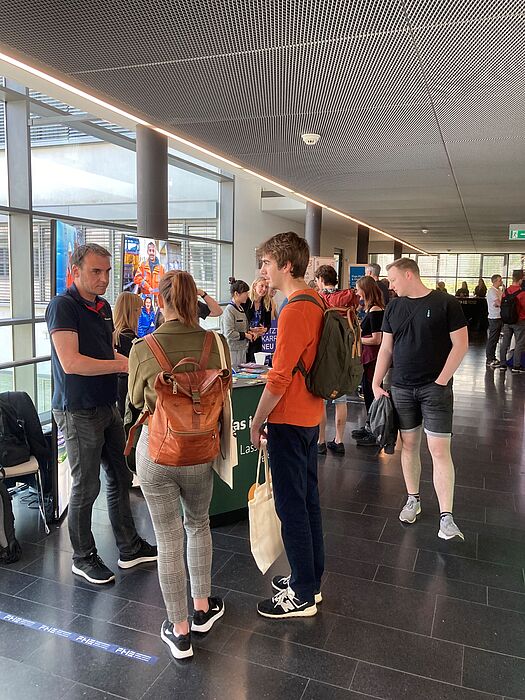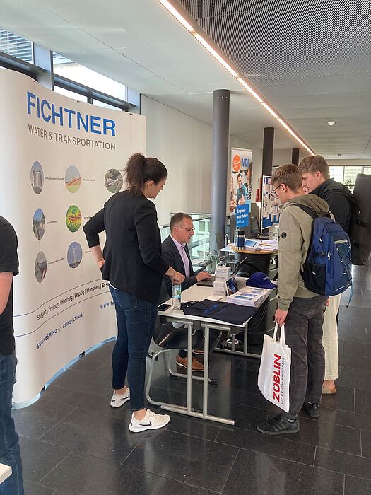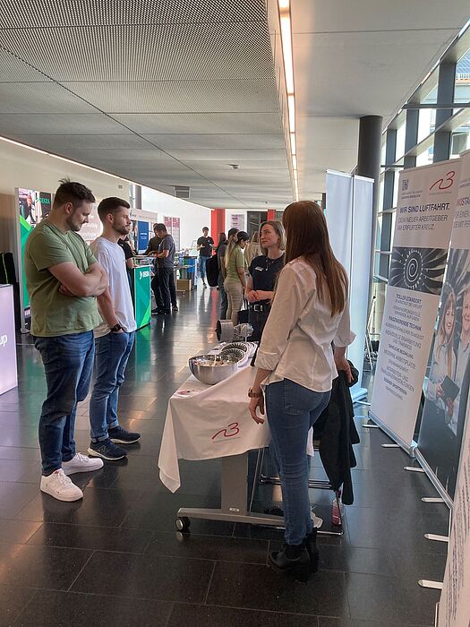 Am 12.06.2024 war der Campus Altonaer Straße der zentrale Treffpunkt von Unternehmen und Institutionen mehrheitlich aus Thüringen und darüber hinaus. Denn auf der 3. Zentralen Karrieremesse der FH Erfurt präsentierten sich über 50 Ausstellende den Studierenden und umwarben ihre potentiell zukünftigen Fach- und Führungskräfte. Sie berieten ausführlich und unterbreiteten Angebote für den Berufseinstieg, für Praktika, Werkstudierendenarbeit sowie Bachelor- und Masterarbeiten.