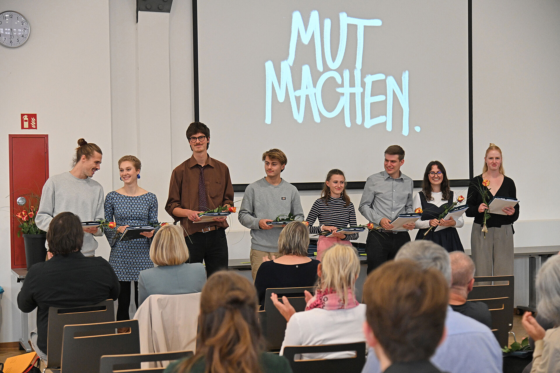 Nach der Zeugnisübergabe durch die Lehrenden erfolgte die Würdigung von besonders guten Absolvent*innen, welche durch die Übereichung von Fachbücher geehrt wurden. Dazu zählten die Jahrgangsbeste des BA-Studienganges Katharina Vosberg, sowie die Jahrgangsbeste des MA-Studienganges Stefanie Werner. Die besten BA-Abschlussarbeiten wurden von Leonie Bublat und Paul Meyer geschrieben, die besten Masterarbeiten von Theo Sauerborn und Lisa Hartung. Frank Mittelstädt als Vertreter des Förder- und Alumnivereins der Fachrichtung Stadt- und Raumplanung (SuRban), zeichnete außerdem Paul Meyer und Stefanie Werner für ihre besonders kreativen, innovativen und überzeugenden Abschlussarbeiten mit Büchergutscheinen aus.