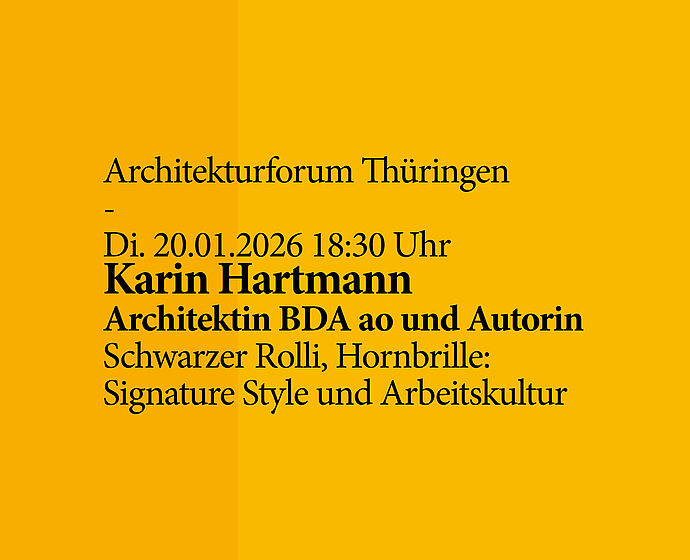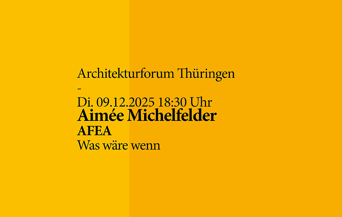 Das Programm für das Architekturforum Thüringen im Wintersemester steht endlich. Eingeladen sind die Architektin Duy An Tran und Architekt Sebastian Rothkopf von der an einer kollektiven Praxis orientierten Gruppe "c/o now", die Architektin Aimée Michelfelder der Association For Ecological Architecture AFEA und Karin Hartmann, Architektin und Autorin des Branchenbestsellers "Schwarzer Rolli, Hornbrille". Wieder…: ‚they are kind of pushing the boundaries of the discipline', jeweils auf ihre Art und Weise, die Vortragenden lassen sich kaum unter einem anderen Motto zusammenfassen. Das wird ein super Winter!