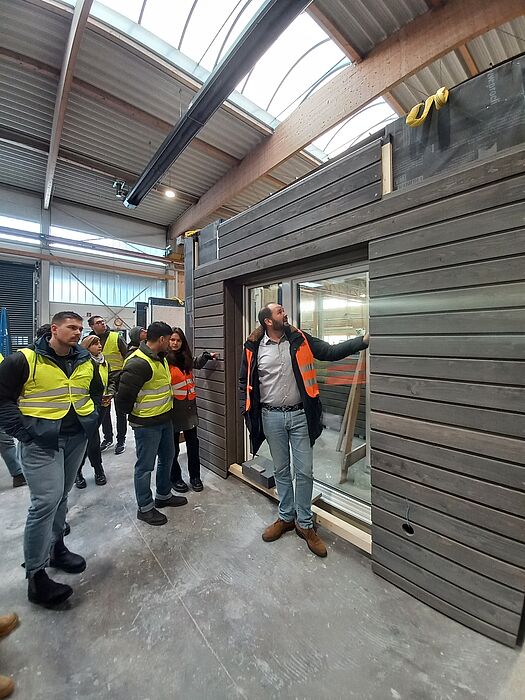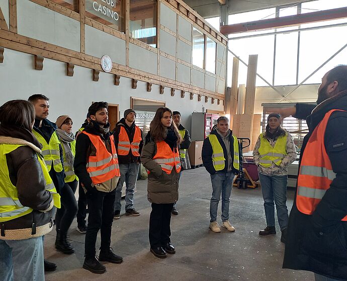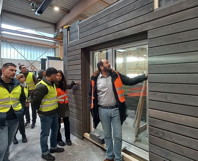 Während einer Führung durch die Produktions- und Montagehallen konnten die Studierenden die Präzision und Effizienz moderner Fertigungstechnologien im Holzbau beobachten. Bei der anschließenden Präsentation aktueller Projekte im mehrgeschossigen Holzbau wurde deutlich, wie vielseitig und zukunftsfähig der Baustoff Holz ist – insbesondere im Hinblick auf die wachsende Nachfrage nach nachhaltigen Bauweisen. Die vorgestellten Projekte zeigten praxisnah, wie Holzbau auch bei komplexen Bauvorhaben eine tragende Rolle spielen kann.