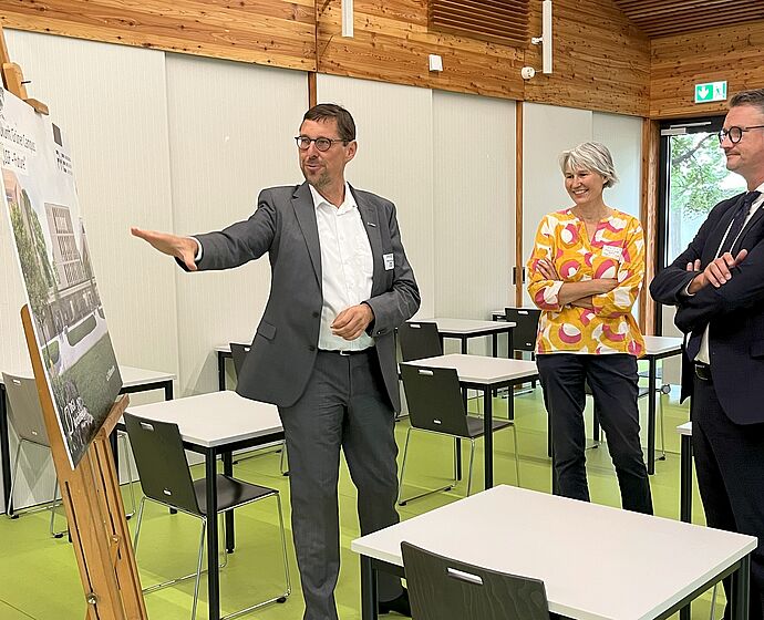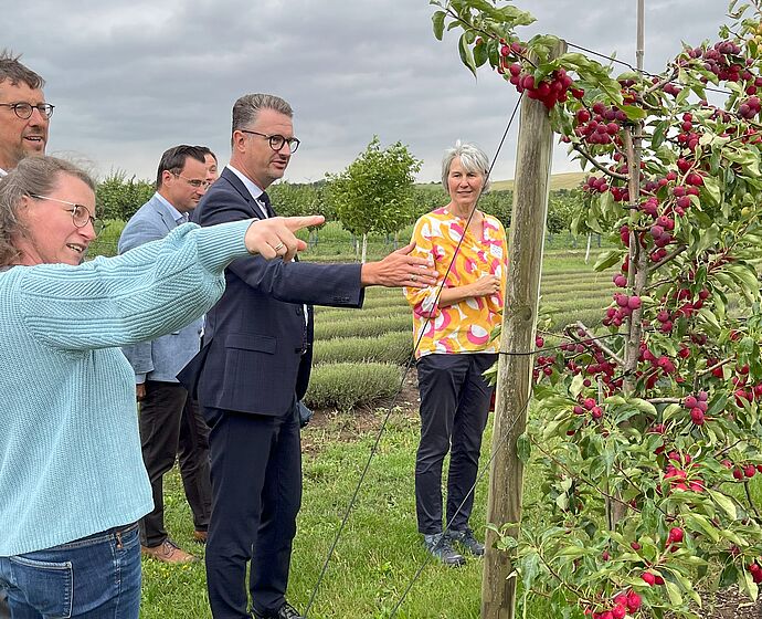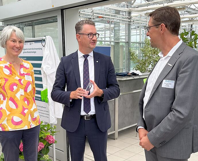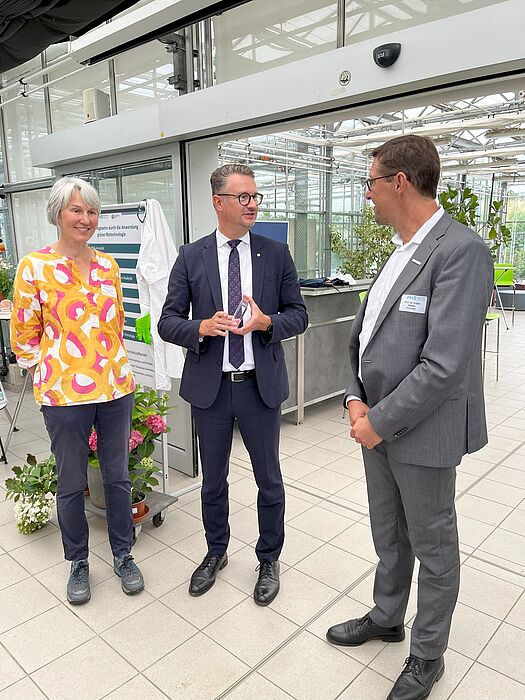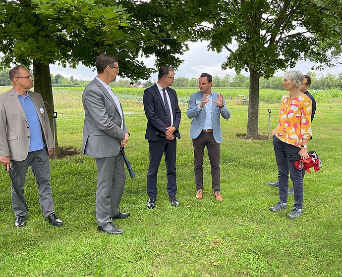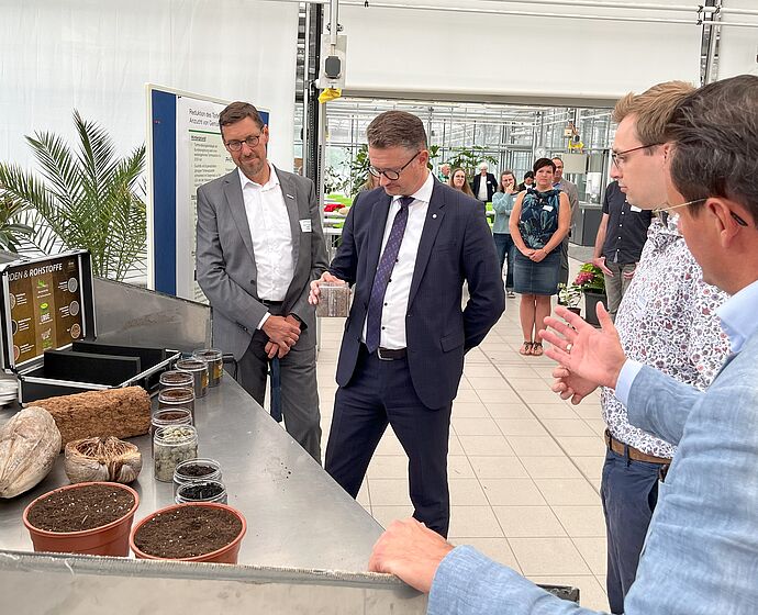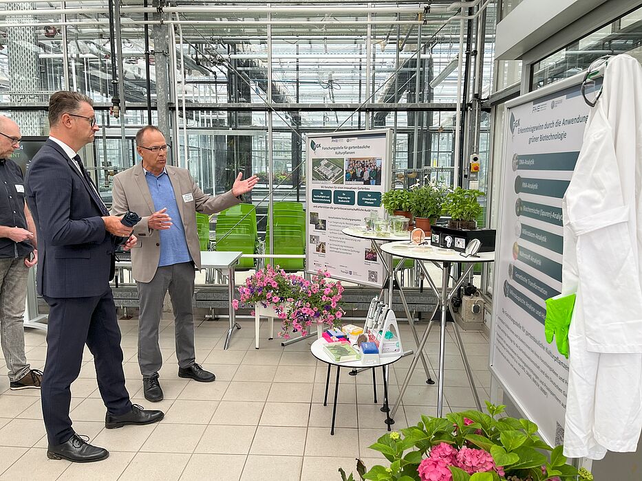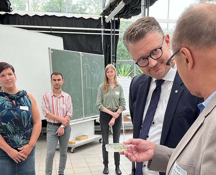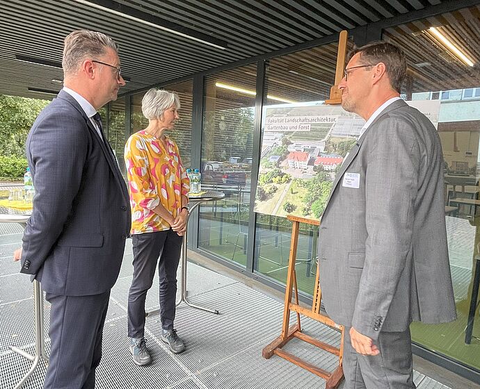 Am vierten Tag seiner Sommertour besuchte Thüringens Bildungs- und Wissenschaftsminister Christian Tischner unsere Fachhochschule und kam mit den Forschenden sowie Mitarbeitenden am Campus Leipziger Straße, Fakultät Landschaftsarchitektur, Gartenbau und Forst, ins Gespräch.