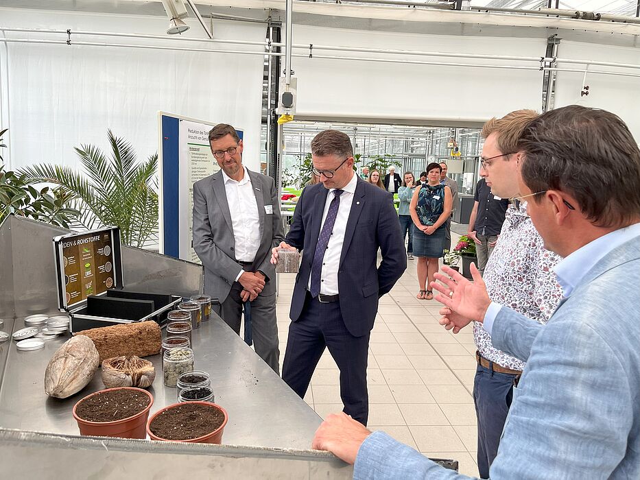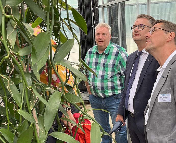 „In dem Treffen konnte sich Wissenschaftsminister Christian Tischner von der Leistungsfähigkeit der FH Erfurt und den zahlreichen innovativen Projekten auf dem Grünen Campus überzeugen. Zusammen mit Thüringer Unternehmen gelingen dort Transferprojekte zur Steigerung der Wertschöpfung in den Bereichen Landschaftsarchitektur, Gartenbau und Forstwirtschaft, was wiederum zahlreiche Studieninteressierte aus dem gesamten Bundesgebiet anzieht“, so Prof. Dr. Frank Setzer, Präsident der FH Erfurt.