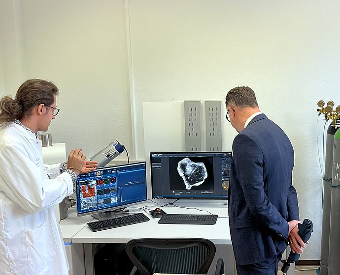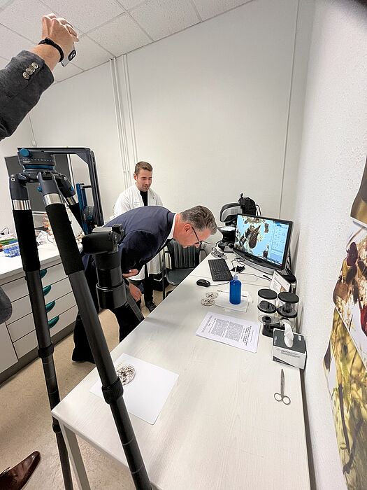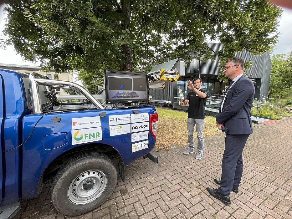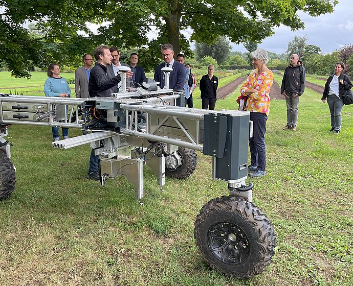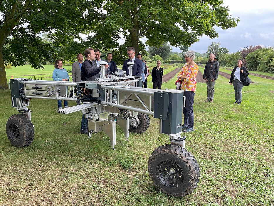 Projekte in Forschung und Lehre zum Thema Nachhaltigkeit wurden vorgestellt, an einzelnen Stationen konnte Minister Tischner selbst die technologischen Entwicklungen testen – wie beispielsweise den sog. Hackroboter.