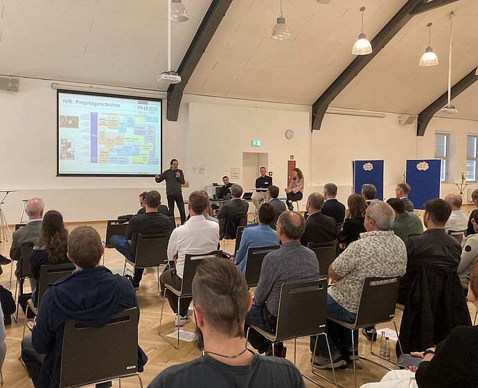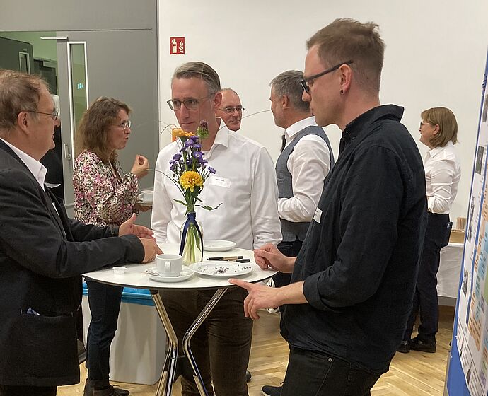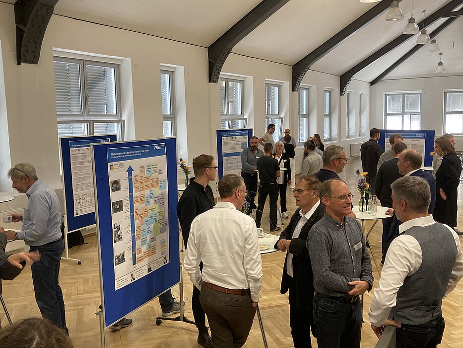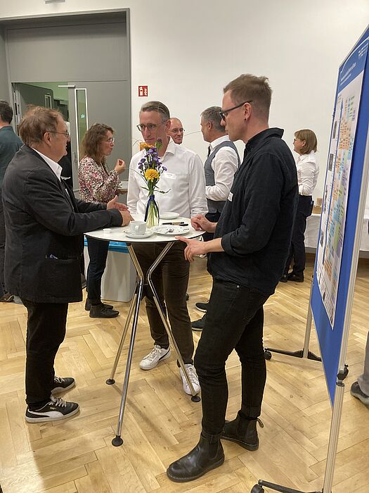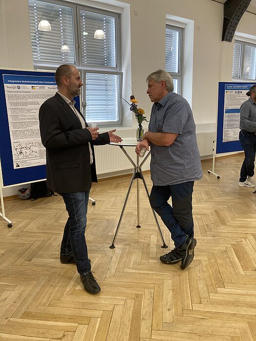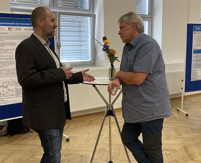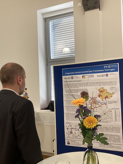 Zu den Gäst:innen zählten Forschungskolleg:innen, Projektpartner:innen, ehemalige Mitarbeitende und Promovend:innen sowie Thüringer Fachvertreter:innen aus den Bereichen Verkehr, Transport und Raumplanung – alle mit direktem Bezug zu den Arbeiten des IVR. Es entstanden lebhafte Diskussionen und Raum für Fragen. In den Pausen bot sich zusätzlich die Möglichkeit, sich über die Schriftenreihe des Instituts und aktuelle Forschungsprojekte zu informieren sowie Gespräche zu vertiefen. Darüber hinaus hatten alle Teilnehmenden die Möglichkeit, auf einer Pinnwand Wünsche für und an das IVR sowie eigene Erinnerungen festzuhalten.