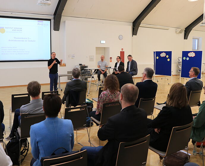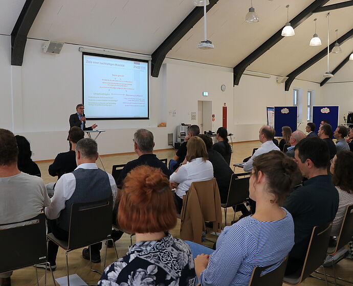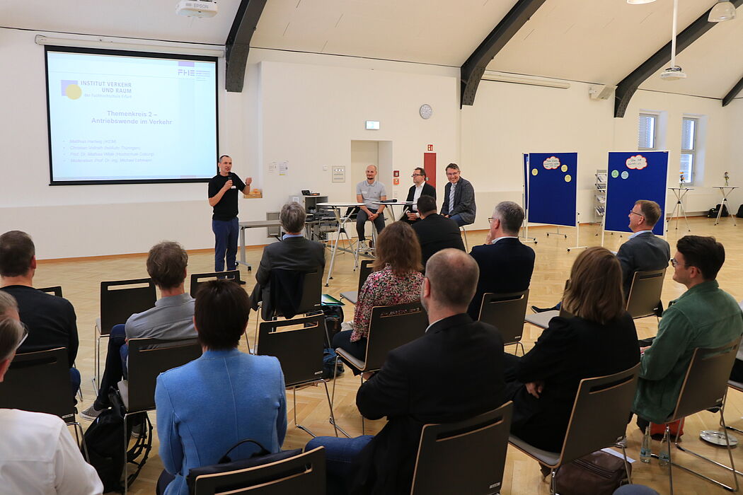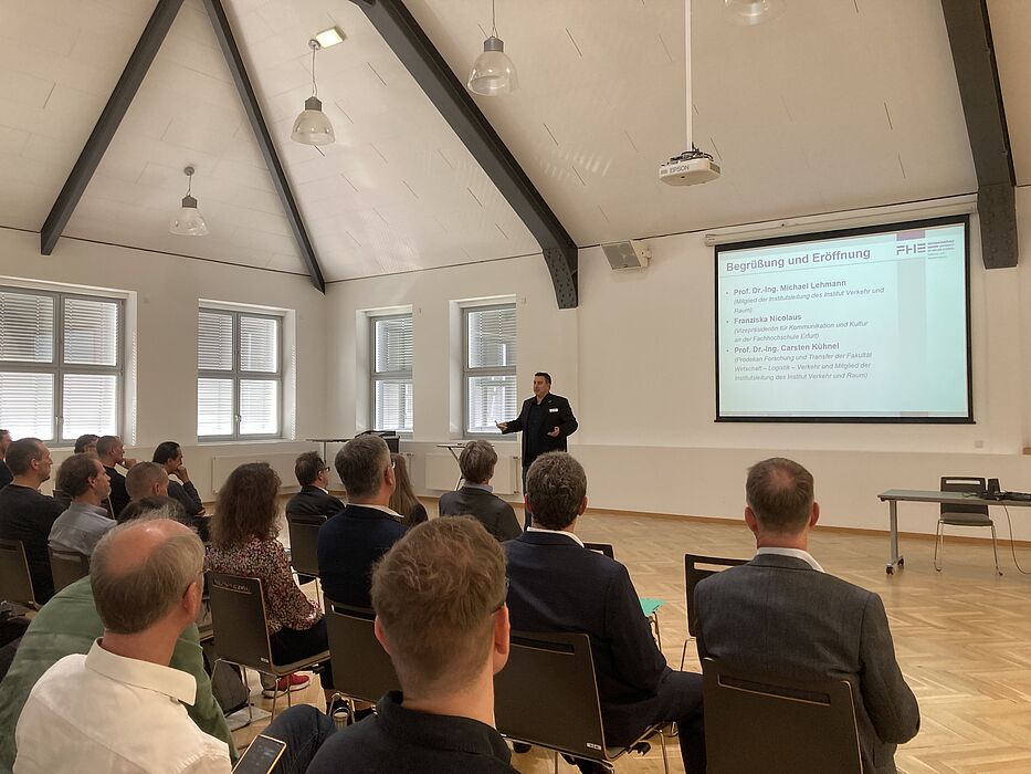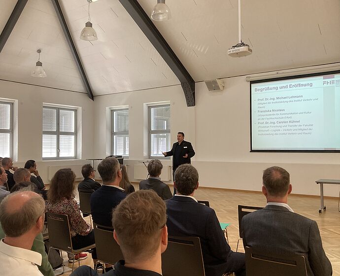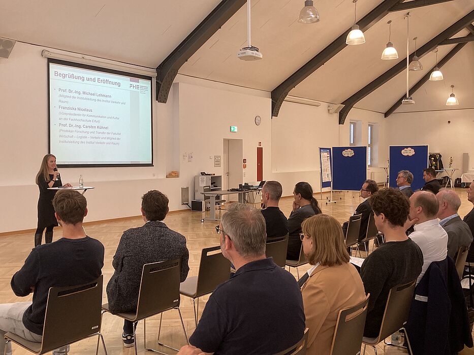 In einem halbtägigen Symposium (Programm hier) wurden aktuelle und zentrale Herausforderungen im Verkehrssektor diskutiert, die Situation vor 20 Jahren betrachtet und ein Ausblick in die Zukunft gewagt. Nach der feierlichen Eröffnung durch Mitglieder der Institutsleitung und einem Grußwort von Franziska Nicolaus, Vizepräsidentin für Kommunikation und Kultur an der Fachhochschule Erfurt, ging es in den fachlichen Programmteil über. In drei Themenkreisen wurden die Aspekte Barrierefreiheit und Verkehrssicherheit, Antriebswende im Verkehr sowie Mobilität und Verkehrswende auf dem Land diskutiert.