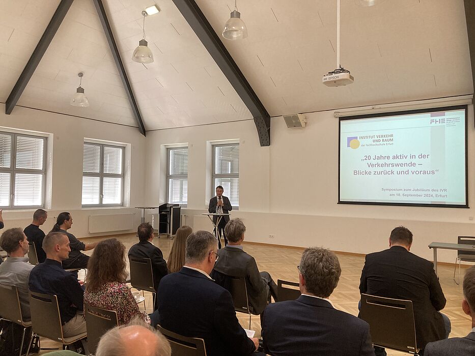 Unter dem Motto 20 Jahre aktiv in der Verkehrswende – Blicke zurück und voraus beging das Institut Verkehr und Raum (IVR) an der Fachhochschule Erfurt am 18.09.2024 die Feierlichkeiten anlässlich seines 20jährigen Jubiläums.