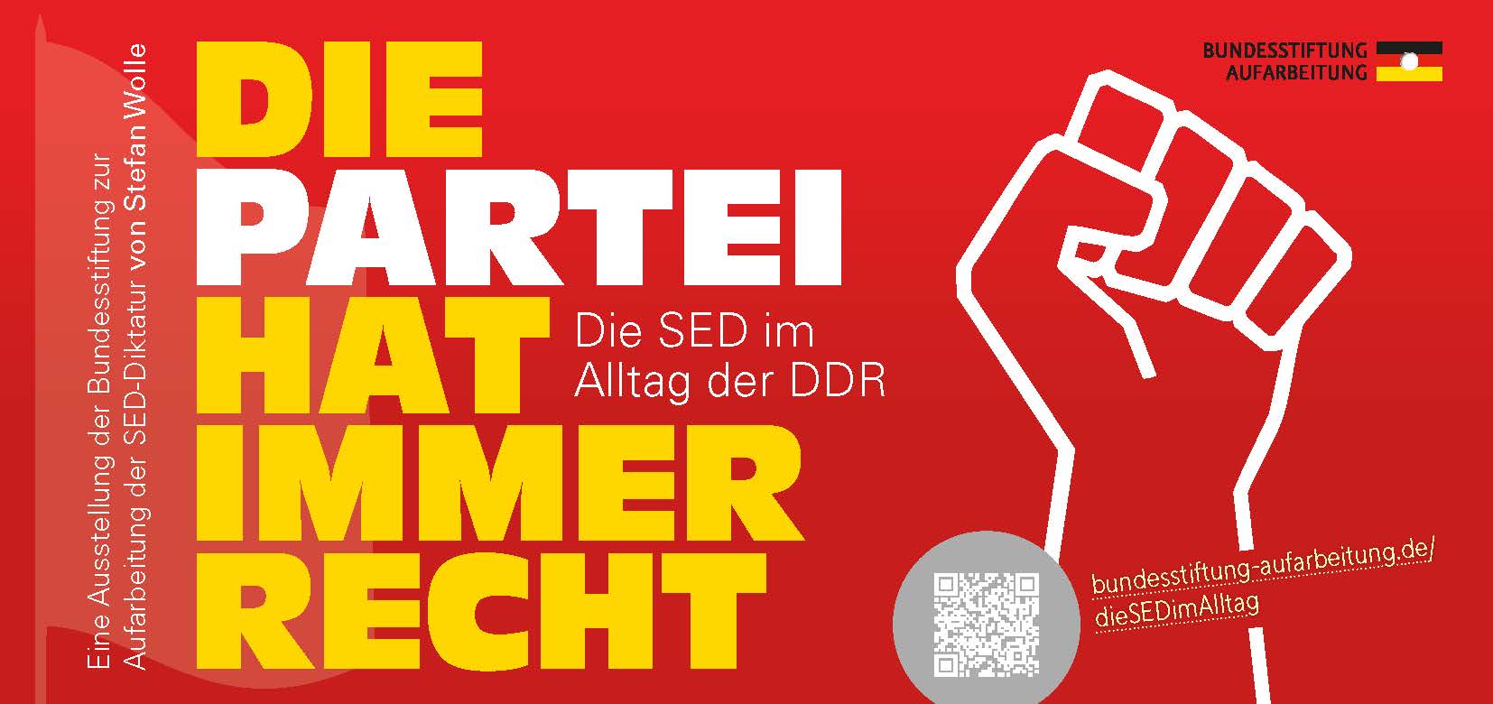 Die Ausstellung “Die Partei hat immer Recht. Die SED im Alltag der DDR” wird vom 09. März 2026 - 29. Februar 2027 an der Fachhochschule Erfurt im Foyer Haus 3, Erdgeschoss zu sehen sein.