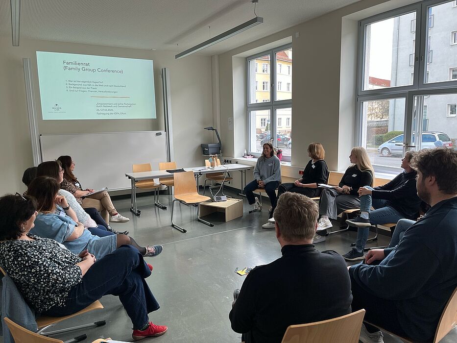 Am 26. und 27. März fand die Bundestagung "Qualifizierung und Weiterentwicklung der flexiblen integrierten Hilfen im Sozialraum" an der Fachhochschule Erfurt statt – und an diesen beiden Tagen wurde deutlich, wie vielschichtig, lebendig und herausgefordert die Praxis und die Diskurse werden, wenn dieses Konzept als Philosophie und als Orientierung für Praxisentwicklungen in den Hilfen zur Erziehung aufgegriffen wird. Über 40 aktive Praktiker:innen und Wissenschaftler:innen haben sich in die Gestaltung dieser Bundestagung eingebracht, die als Kooperationsveranstaltung der Fachgruppe "Integrierte Hilfen" der Internationalen Gesellschaft für erzieherische Hilfen (IGfH) und der Fakultät Angewandte Sozialwissenschaften der Fachhochschule Erfurt stattfand.
