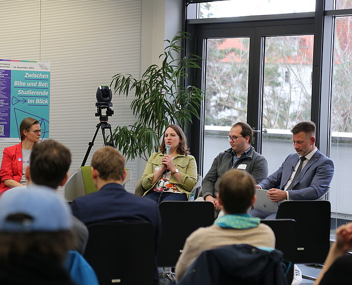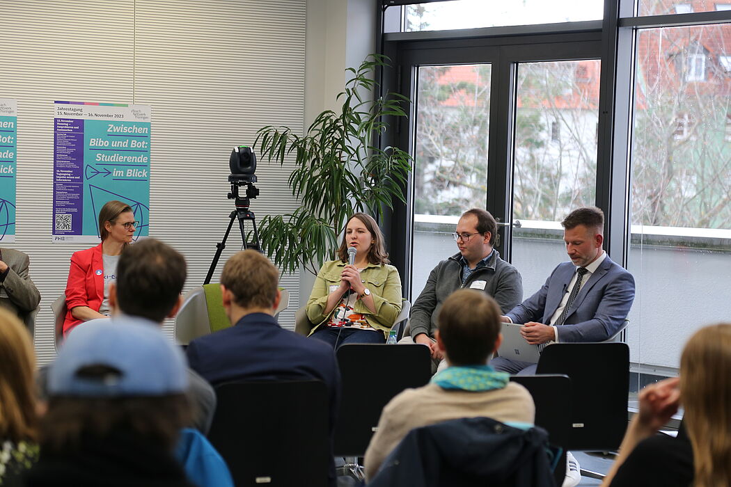 Die Einbindung von Studierenden war für das Tagungsgeschehen eine große Bereicherung– schließlich sind sie wesentliche Adressat:innen für die Gestaltung von Lernräumen und -orten sowie medienbereicherten Lehr-Lern-Settings, für methodisch-didaktische Konzeptionen oder für die Weiterentwicklung der Prüfungskultur. Zudem bringen ein eigenes Verständnis vom Lernen mit und studentischem Miteinander mit, verfügen über ausgewählte medienbezogene Kompetenzen und benötigen gleichzeitig Unterstützung bei der Nutzung von digitalen Tools und Anwendungen im Studium. Exemplarisch für die unterschiedlichen Blickwinkel, Bedürfnisse und Nutzungspraktiken von Lernenden und Lehrenden sowie an Hochschulen Tätigen stehen die Entwicklungen und das Veränderungspotenzial im Bereich der künstlichen Intelligenz – welcher natürlich auch im Rahmen der Jahrestagung eine wesentliche Rolle einnahm.