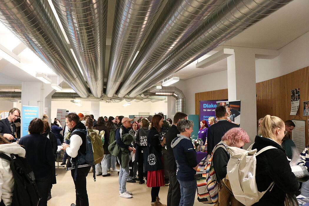 39 Träger der Sozialen Arbeit und Kindheitspädagogik beteiligten sich mit über 100 Fachkräften an einer Praxismesse, um mehr als 250 Studierende zu möglichen Praktika, Berufseinstieg und fachlichen Themen zu beraten. Viele unserer Absolvent:innen waren mit ihren Praxisträgern vertreten.