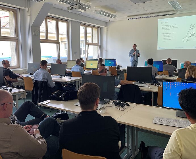 Erstmalig wurden zum Seminar auch in einem angeschlossenen Programm an der Fachhochschule Erfurt durch Prof. Yvonne Brandenburger (FH Erfurt), Prof. Dr. Robert Kaden (FH Erfurt), Prof. Dr. Christian Clemen (HTW Dresden) und Eric Ewert (FH Erfurt) Workshops veranstaltet. Neben dem BIM-Einführungskurs »BIM in a Nutshell« wurde zudem zum Thema »Geodäsie und BIM in der Lehre« über Entwicklungen in der Hochschullehre und der Einbeziehung digitaler Methoden in der Ausbildung von Geodäten und Planern diskutiert. Zudem wurden im Praxisworkshop »Von der Punktwolke zum BIM« Anwendungen zu Geodaten und BIM-Modellen aufgezeigt.
