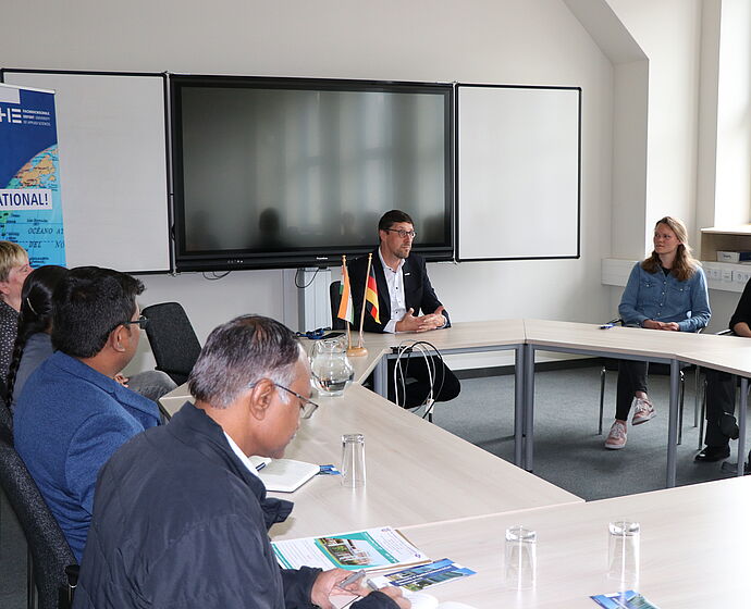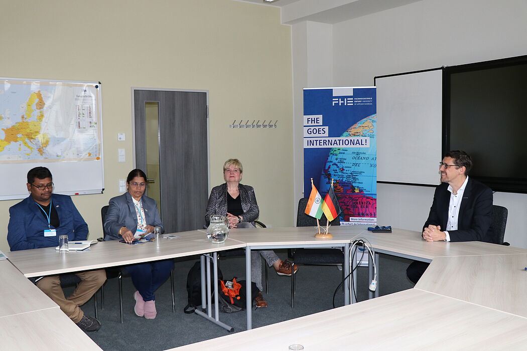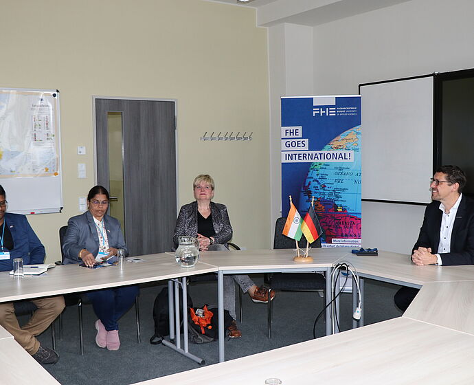 Nachdem der Präsident der Fachhochschule, Prof. Dr. Frank Setzer, gemeinsam mit Prof.in. Dr. Christine Rehklau, Beauftragte für Internationales, die Gäste am Campus Altonaer Straße begrüßt und sich mit ihnen über die internationalen Kooperationen ausgetauscht hatten, waren zwei der indischen Kolleg:innen im Seminar „Gender and Diversity“ zu Gast. Die weiteren Kolleg:innen lernten die MINT-Studiengänge kennen.