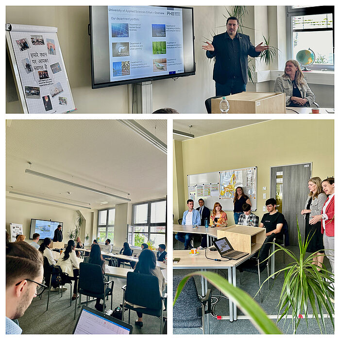 Bereits im letzten Jahr wurde der diesjährige Besuch der indischen Partner vorbereitet und der Austausch gestartet, indem Frau Prof.in Brunner im Juli 2023 mit ihren indischen Kolleg*innen an der dortigen HS die Formalitäten und Grundsteine plante und legte. Schon im November 2023 konnte dann eine erste Exkursion unserer Studierenden für 10 Tage nach Indien unter Begleitung von Frau Prof.in Brunner an die JMI stattfinden.