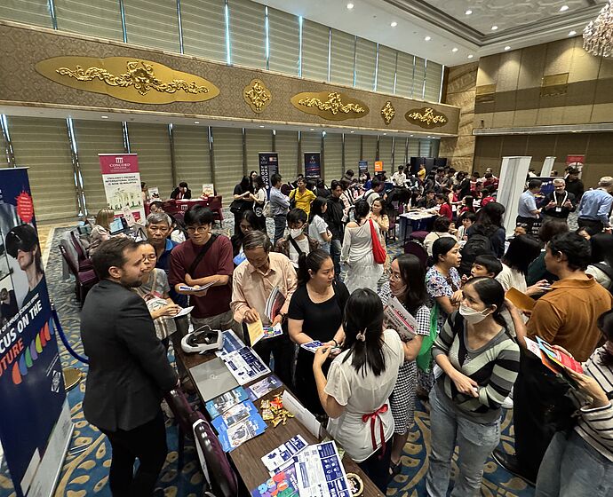 Vom 01. - 08.04.2025 reisten der Präsident der Fachhochschule Erfurt, Prof. Dr. Frank Setzer, und der Leiter International Office, Kevin Rausch, nach Vietnam, um durch Vertiefung und Erweiterung von Kooperationen mit Bildungseinrichtungen an die Ergebnisse der vorhergehenden Delegationsreise nach Vietnam vom November 2023 des damaligen Thüringer Ministerpräsidenten Bodo Ramelow anzuknüpfen. Sowohl Schulen, an denen Deutsch unterrichtet wird, das Goethe-Institut als auch Hochschulmessen in Hanoi und Ho-Chi-Minh-Stadt standen auf dem Programm. Ziele der Reise sind die Stärkung der Präsenz der FH Erfurt in Vietnam sowie die Gewinnung potenzieller internationaler Studierender.