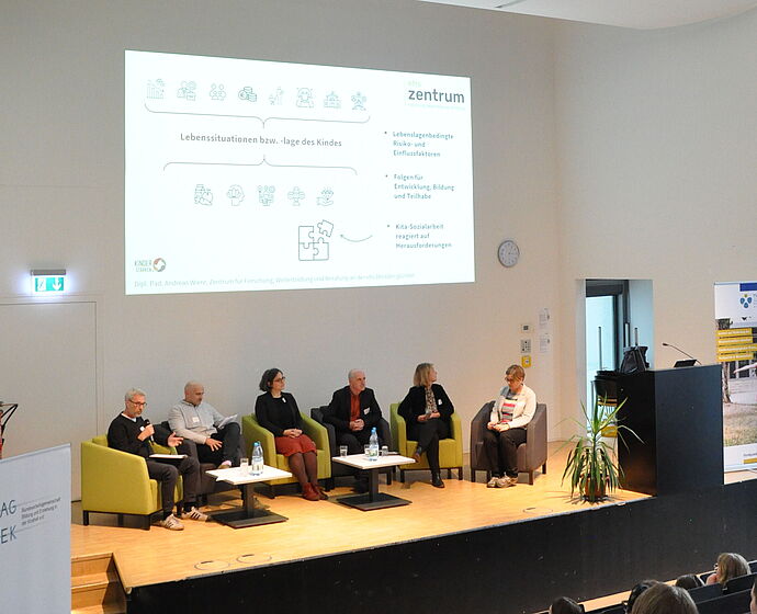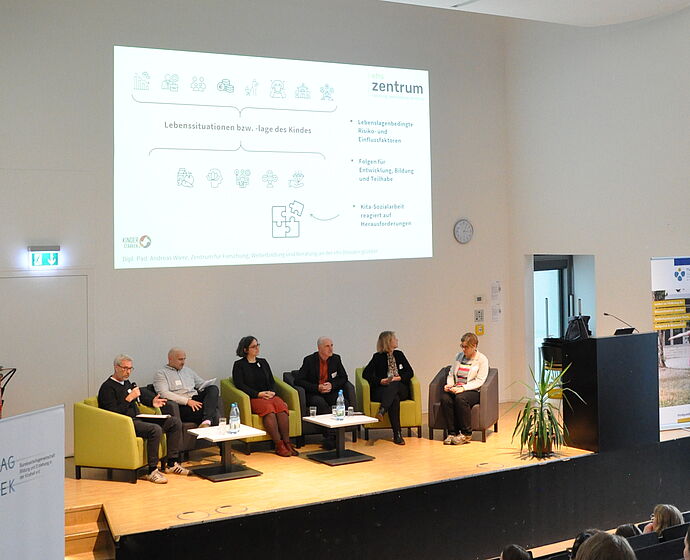 In ihrem Fachvortrag gab Prof. Dr. Nicole Klinkhammer von der BAG-BEK und der Technischen Hochschule Augsburg Einblicke in ein vielgestaltiges Handlungsfeld. Unterschiedliche Konzepte und Modelle in den Bundesländern reichten von einer fest installierten Kita-Sozialarbeit bis hin zu eher sporadischer Sozialer Arbeit in einer Kita. Eine Kita-Sozialarbeit könne dann gelingen, wenn die Rollen klar seien, sie strukturell verankert sei, verschiedene Professionen zusammenarbeiteten, die Fachkräfte qualifiziert seien und es einen niedrigschwelligen Zugang zu den Angeboten und Dienste gäbe. Vor allem aber gehe es um ausreichende Ressourcen von Zeit, Geld und Personal.