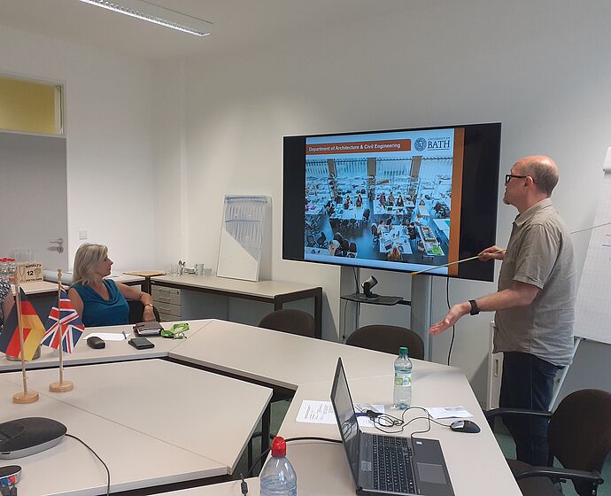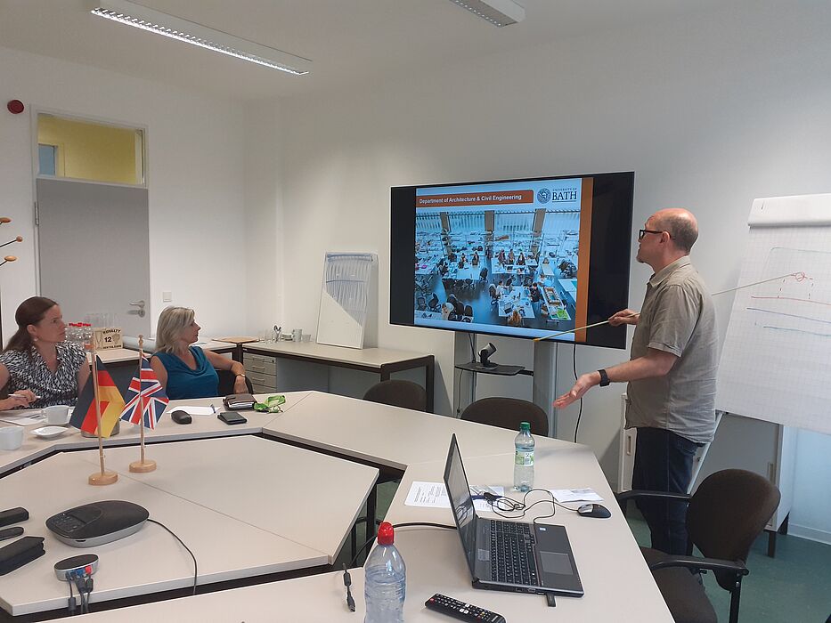 Dies war ein weiterer Schritt in der Fortsetzung einer vielversprechenden Zusammenarbeit mit dem Department of Architecture & Civil Engineering an der University of Bath. Vorrausgegangen war ein Besuch von Prof. Steinbach und Stephan Jörchel in Bath Ende letzten Jahres sowie ein Aufenthalt von Prof. Steinbach in Bath im Rahmen seines Forschungssemesters im Sommer dieses Jahres.