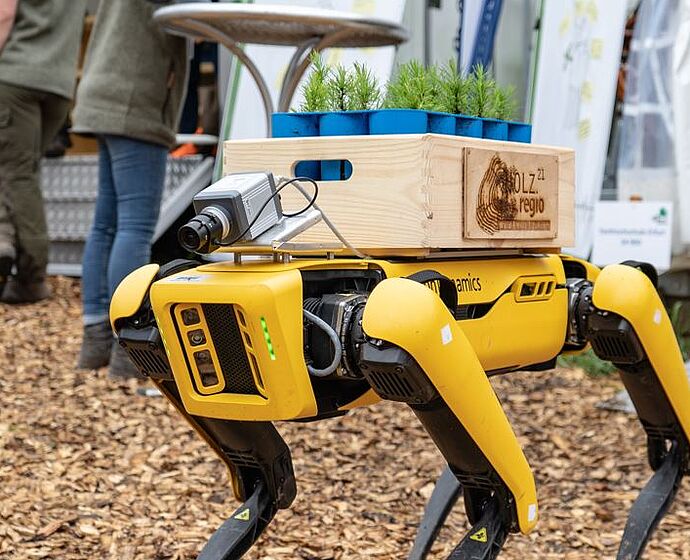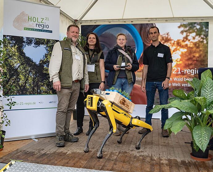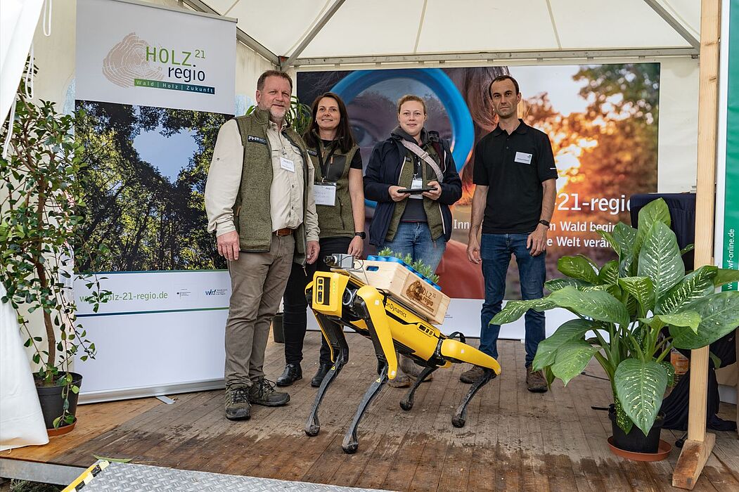 Auch das Projekt Holz-21-regio war vertreten, das durch innovative Wertschöpfung aus dem "Ressourcenpool Wald" den Wandel in der Thüringer Waldregion Rennsteig-Schwarzatal unterstützen möchte und Robotik und Künstliche Intelligenz für den Wald von morgen erprobt. Das Team des Forschungsprojekts „Contura“, das kooperativ zwischen der FH Erfurt und der TU Ilmenau durchgeführt wird, stellte aktuelle Entwicklungen zur optisch basierten Zustandserfassung von Waldwegen vor.