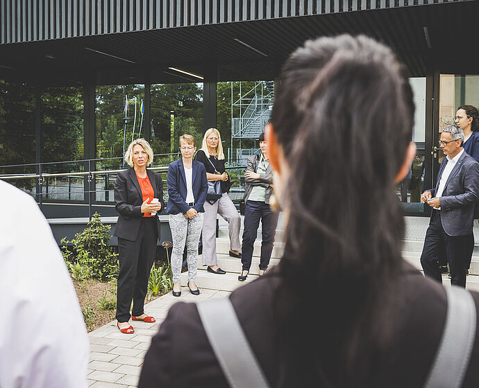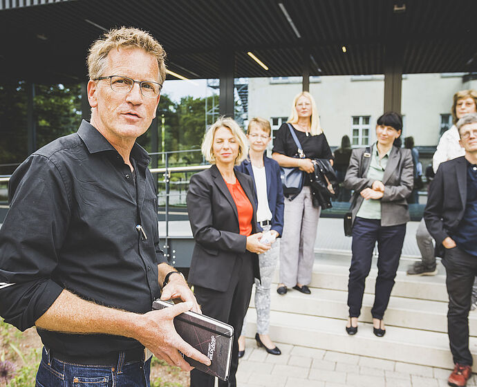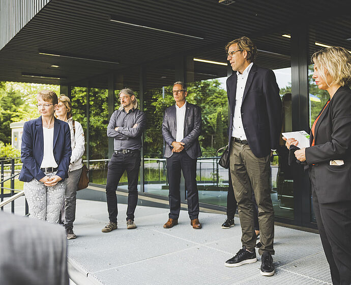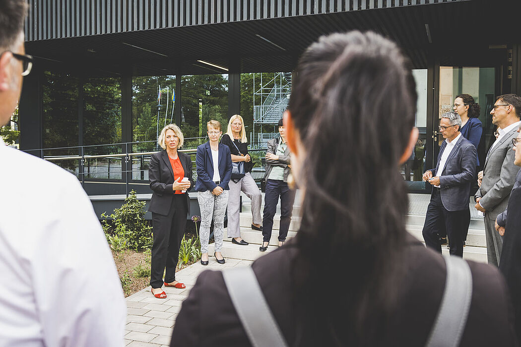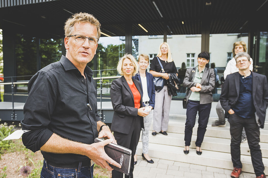 Im Anschluss an die Enthüllung der Plakette fand die öffentliche Ringvorlesung der FH Erfurt „Holzbau als Chance“ mit dem Thema „Unterstützt der Holzbau die gesunde Entwicklung unserer Kinder?“ statt. Das sei nur ein Beispiel, wie auch die Erfurterinnen und Erfurter den „Green Campus“ erleben können.