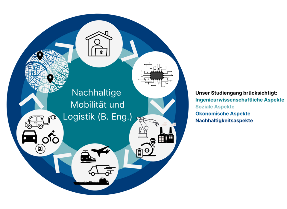 Um Sie bestmöglich auf Ihre zukünftigen beruflichen Aufgaben vorzubereiten, vereint dieser Studiengang ingenieurwissenschaftliche, ökonomische, soziologische und insbesondere nachhaltige Perspektiven.