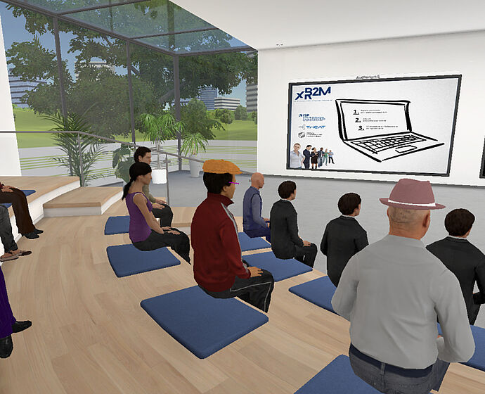 Die Studierenden haben die Möglichkeit sich orts- und zeitunabhängig in das XR_Bildungs-Metaverse zu begeben. Sie kommunizieren und agieren dort als Avatare miteinander, bewegen sich, interagieren, tauschen sich aus, debattieren und arbeiten kollaborativ zusammen. Zur Methodenvielfalt der kollaborativen Zusammenarbeit stehen den Studierenden umfangreiche Objekt- und Medienkoffer, Moderatoren-Tools und virtuelle Elemente zur Verfügung. Metaverses - in der Technologiedebatte als Zukunftsinnovation verortet – sind als sozial erlebbare mediale bzw. virtuelle Kommunikationsräume zu verstehen, in dem die physische Realität mit der digitalen Virtualität verschmilzt.