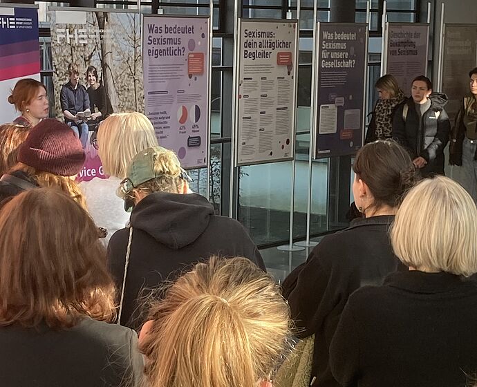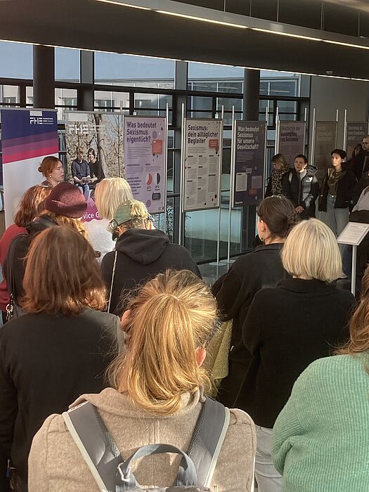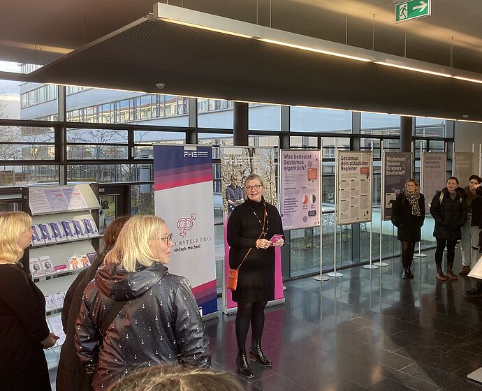 Noch bis zum 13.12.2024 kann am Campus Altonaer Straße, Haus 8 im Foyer die Ausstellung „Gemeinsam gegen Sexismus“ besucht werden, die am 20.11.2024 mit zahlreichen Teilnehmenden eröffnet wurde. Die Ausstellung vermittelt ansprechend gestaltete Basisinformationen zu Sexismus, seinen Erscheinungsformen und Auswirkungen. Sie ist ein Angebot des Bündnisses „Gemeinsam gegen Sexismus“, dem auch unsere Fachhochschule angehört.