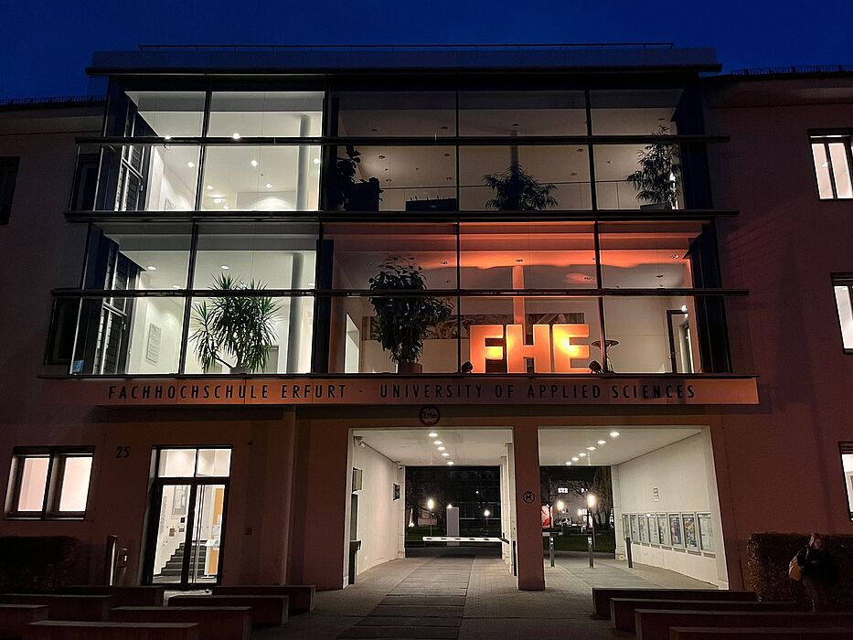 Am 25.11.2024 war „Internationaler Tag zur Beendigung von Gewalt gegen Frauen“. Die FH Erfurt beteiligt sich an der UN-Kampagne „Orange the World“ und setzt mit einem orange beleuchteten Gebäude am Campus Altonaer Straße ein Zeichen gegen Gewalt und Sexismus.