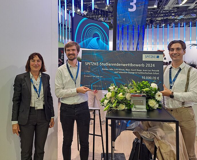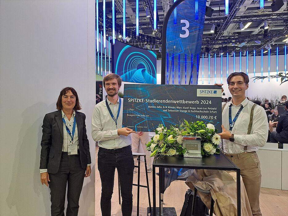 Im Rahmen der InnoTrans 2024 fand am 27.09.2024 die feierliche Bekanntgabe der Gewinner und Preisübergabe auf dem Stand der Spitzke SE statt. Damit sicherten sich die Studierenden ein Preisgeld von 10.000 Euro, welches je zur Hälfte an die Studierenden sowie den Förderverein Verkehrs- und Transportwesen Erfurt e.V. geht.