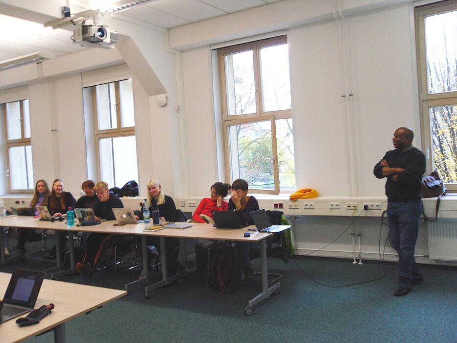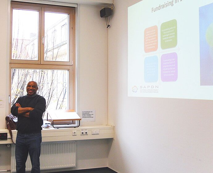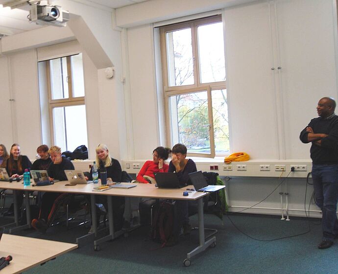 Prof. Ndanagwa Noyoo lehrt und forscht zu Themen, die sich auf die Förderung des sozialen Wandels und die Verbesserung der Lebensbedingungen in afrikanischen Gesellschaften fokussieren. Er hat in verschiedenen internationalen und nationalen Kontexten über soziale Gerechtigkeit und die Herausforderungen, denen insbesondere Länder des Globalen Südens gegenüberstehen, gearbeitet. Sein vermitteltes Wissen leistete für die Studierenden und Lehrkräfte einen äußerst wertvollen Beitrag, eigene Perspektiven auf relevante Themen, wie beispielsweise Kolonialisierungsfolgen, Entwicklungshilfe oder der Einfluss internationaler Institutionen, substantiell zu hinterfragen und zu erweitern.